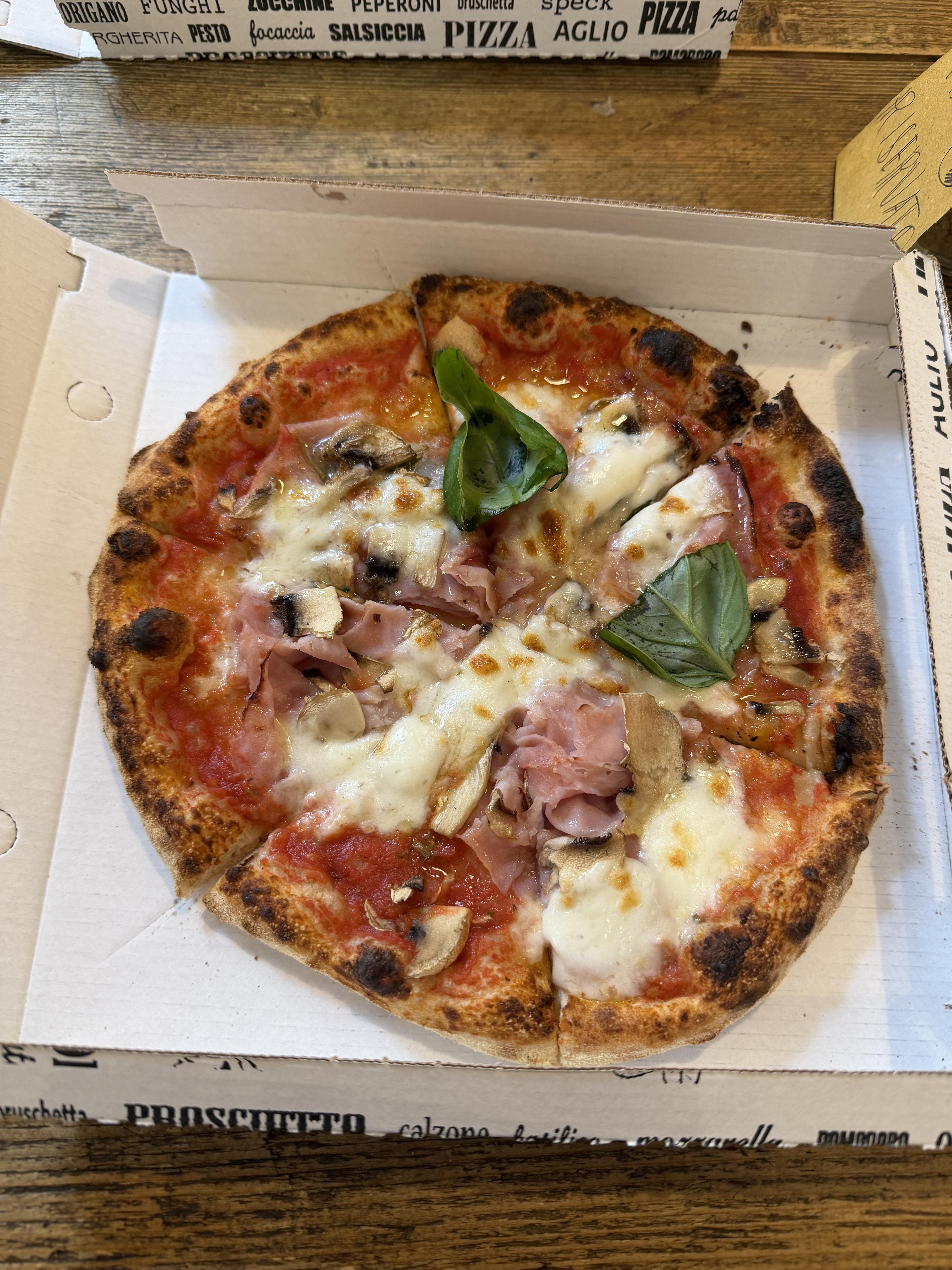 Not only was it amazing pizza, but I was so tired from walking and the jetlag that it just hit the spot! It tasted so fresh, which it had to have been fresh because they were made to order, but it wasn't too hot at the same time! I ate half the pizza while it was hot and the other half after I'd walked around the city for about 20 minutes, and surprisingly, it tasted even better when it was cold, too.