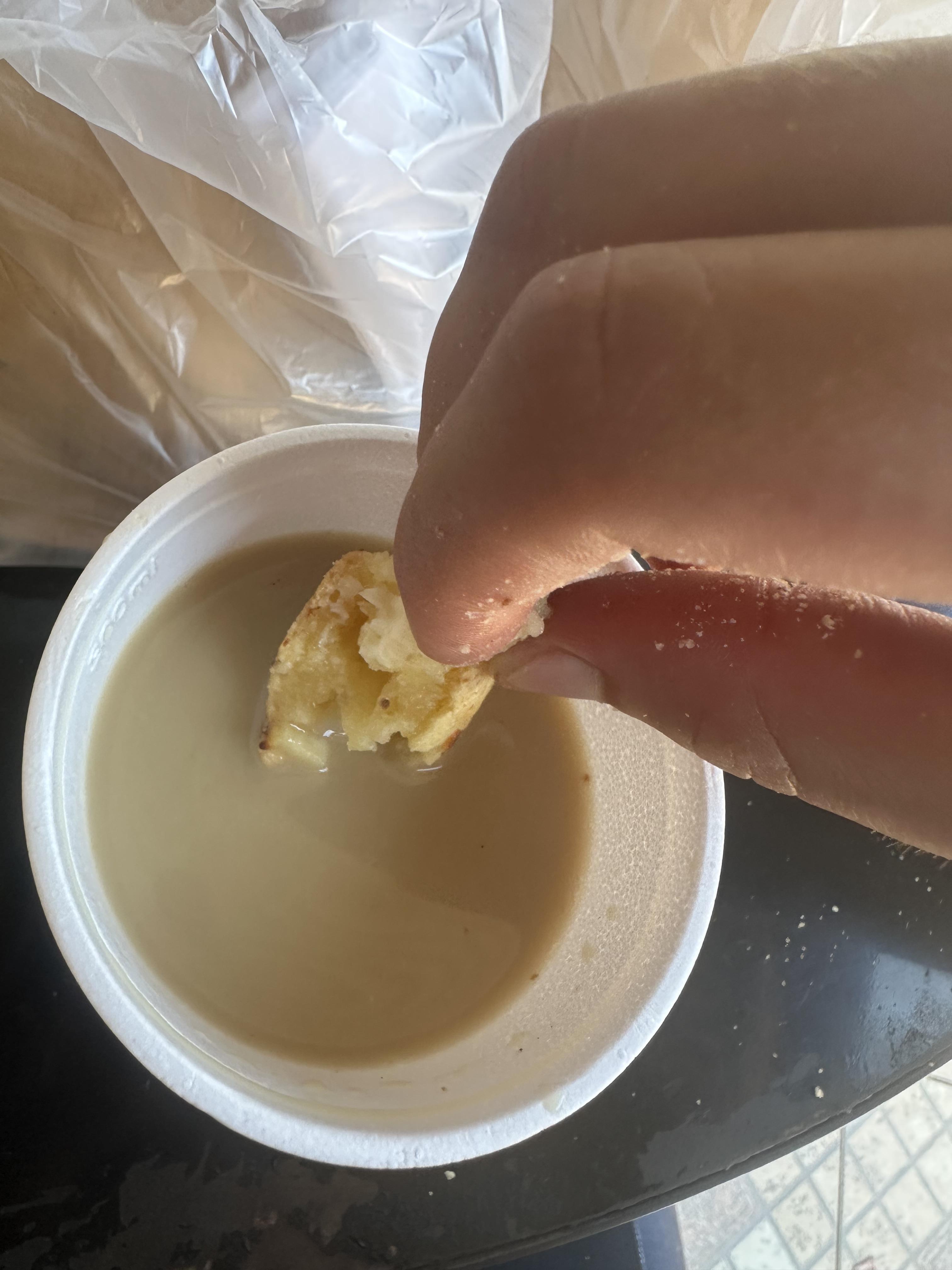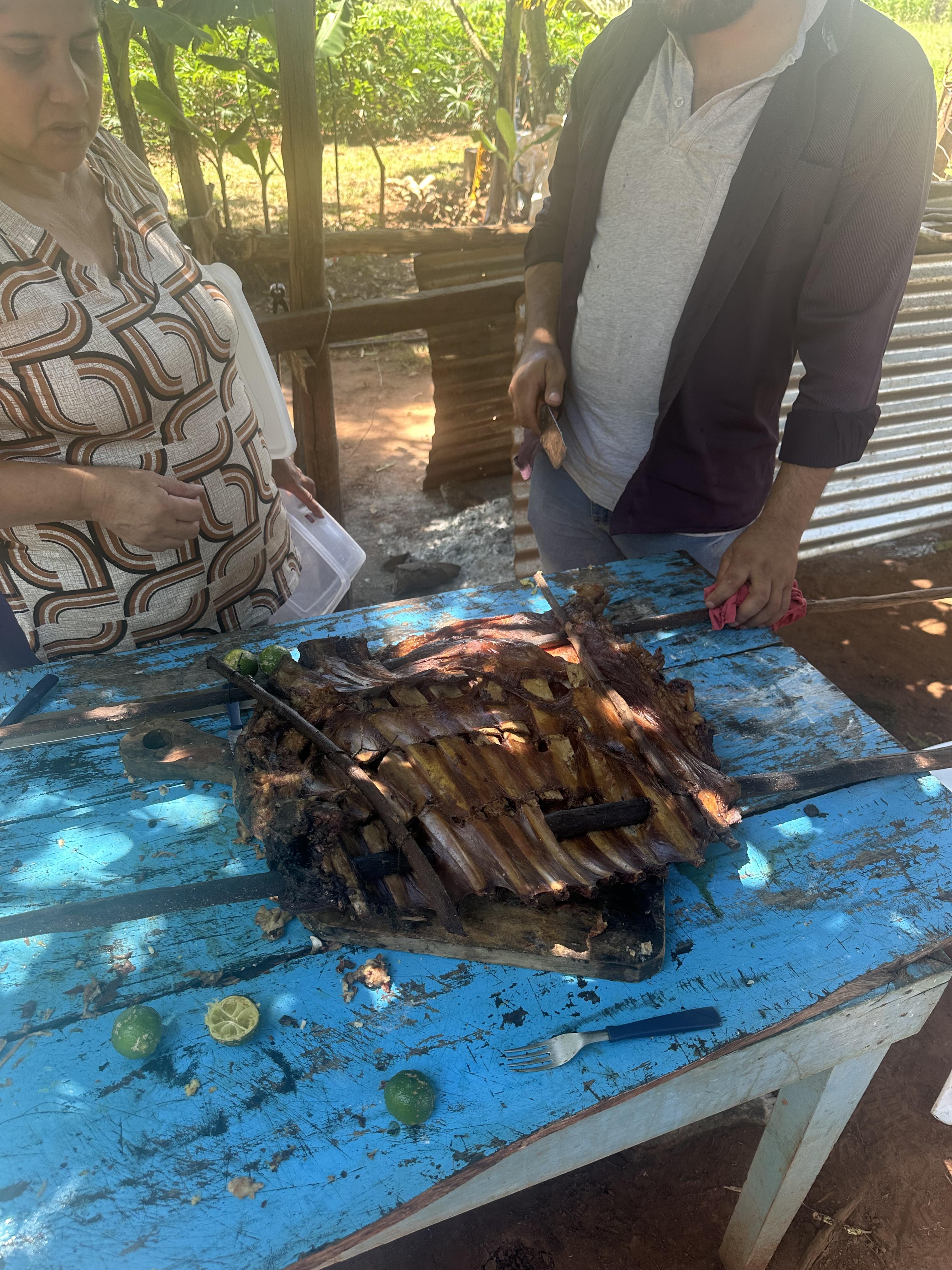Although it wasn´t really a meal, I enjoyed a food stop in Cornel Bogado this week when I was on my bike, which is located about 20 miles away from my community. It is informally called the national capital of chipa, known for having the best chipa in the country. I went to Don Pipa, the best rated place in town, and I was really impressed with all of the options they had. I ate the traditional chipa, chipa so’o and chipa de pollo. So’o means beef in Guarani, and pollo means chicken in Spanish. My favorite one was the chipa so’o. I also ordered cocido, which is a hot drink made from burning sugar and yerba mate leaves with hot coals and then adding hot water. When served, it is mixed with hot milk. I like to dip the traditional chipa in the cocido, as it heats up the center of the chipa, softening it up and adding the unique flavor of the cocido. This is a combo that many Paraguayans enjoy daily.