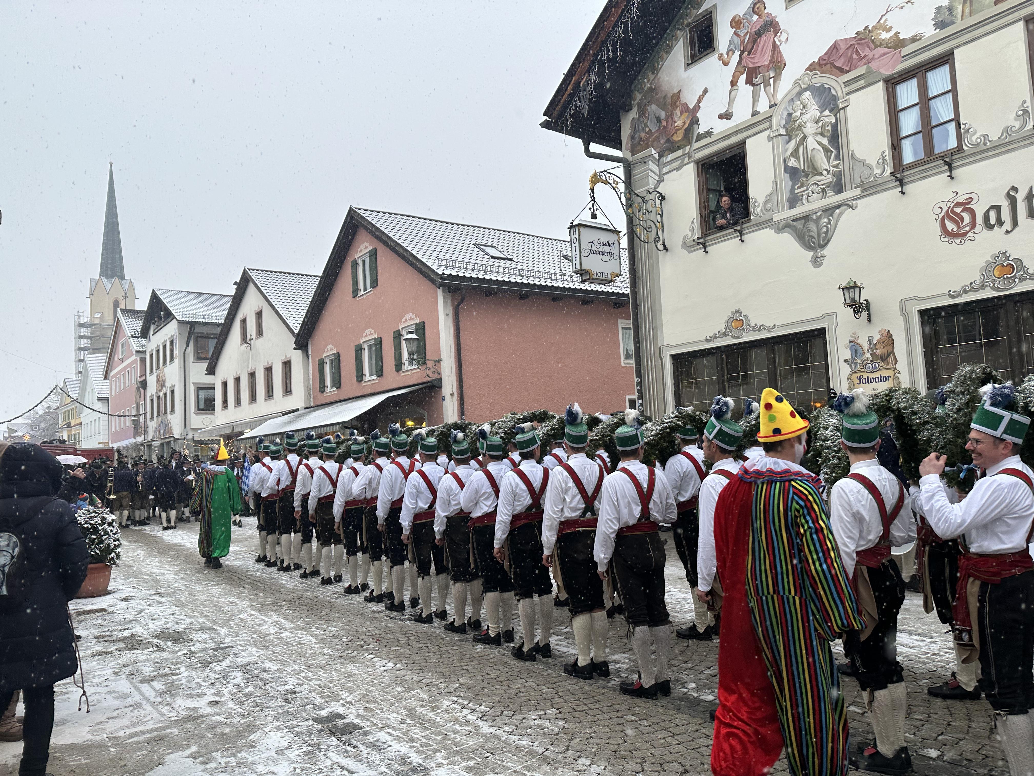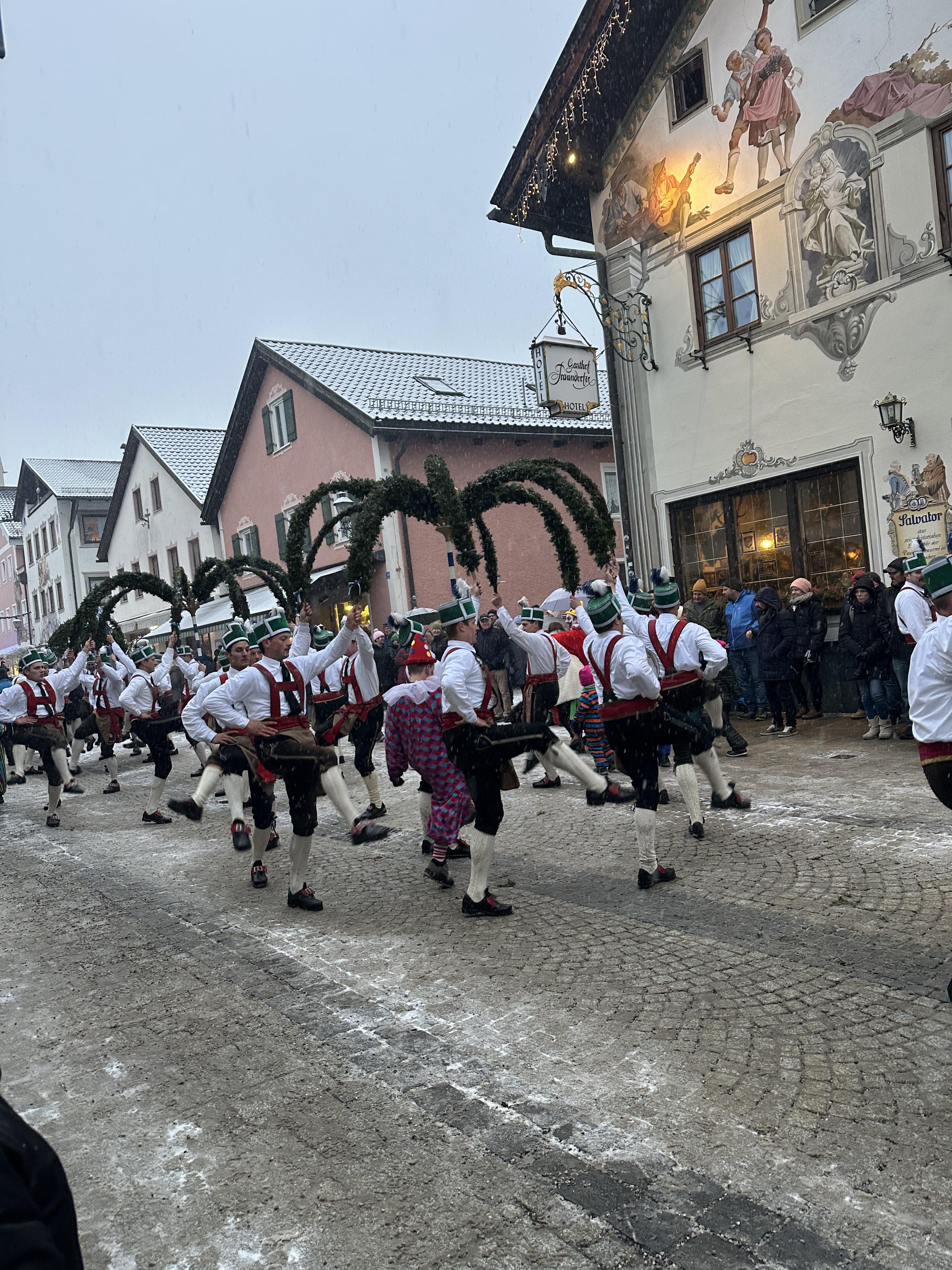 I saw a performance of a Schaffler dance (in German: Schäfflertanz) in the Munich area this week. The Schaffler dance is an old tradition in the southern parts of Germany that originated as a representative dance of coopers (barrel makers) in Munich. Originally, only unmarried, young coopers were allowed to participate. However, in recent years, these restrictions have relaxed. The dance involves a group of dancers in traditional costume making intricate figures symbolizing endurance of the Munich people through a great plague in 1517. The dance is only performed once every seven years.