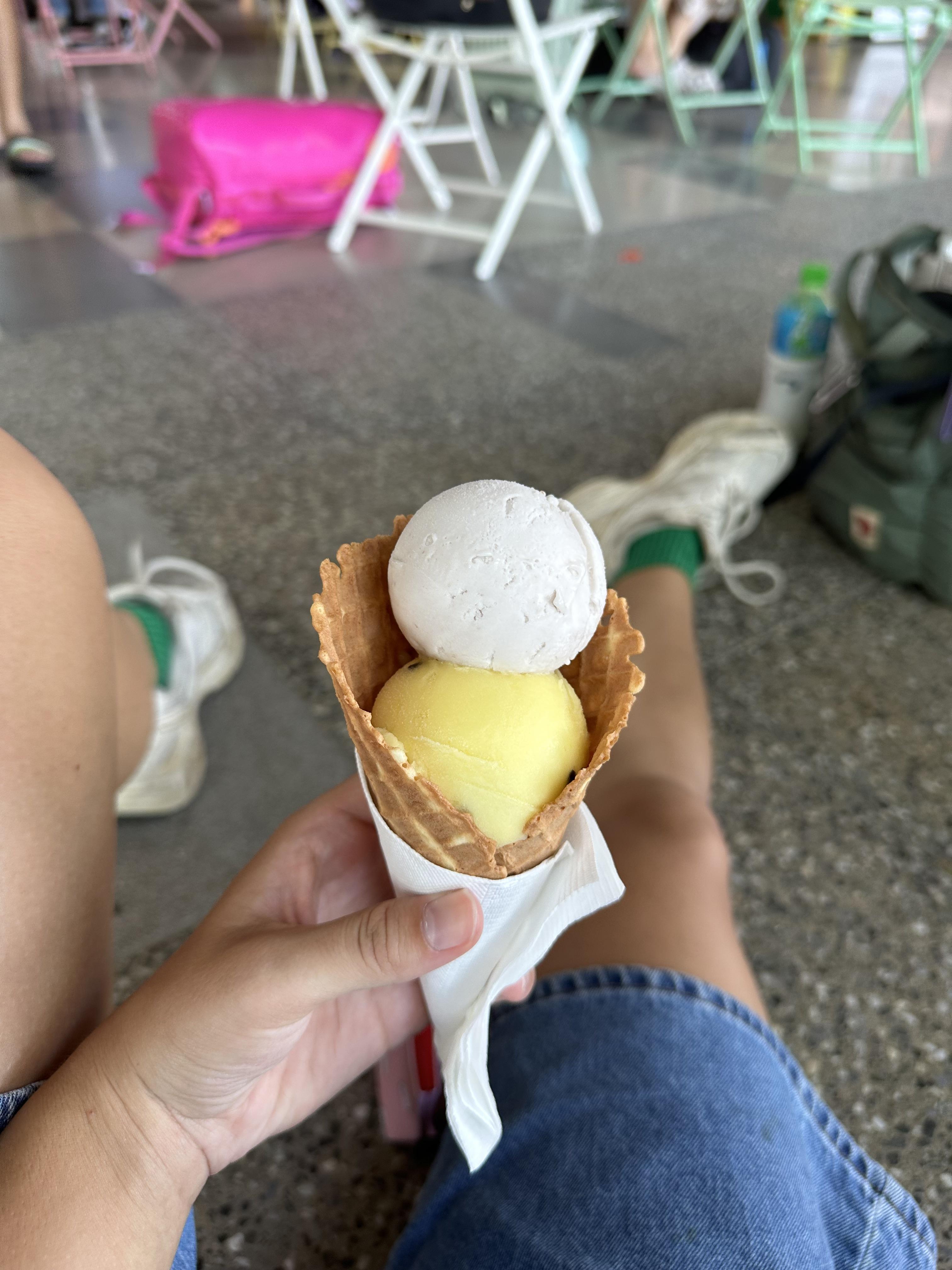 Taro and passion fruit ice cream at the Taitung train station