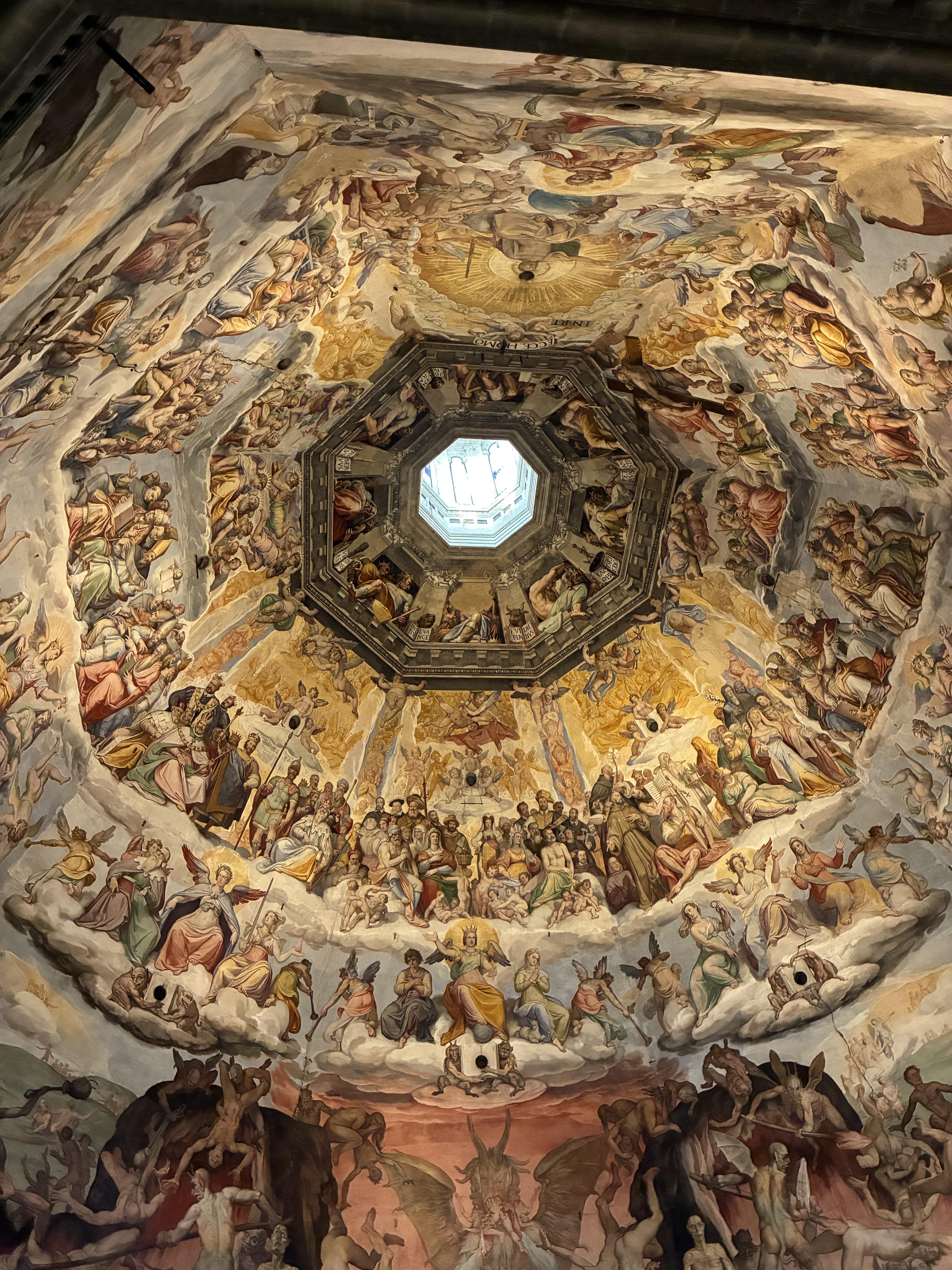 In Florence, the concept of a piazza as a community center is very traditional, and is alive and well today. When Renaissance architects were building the core monuments of Florence, many streets were designed to host a center square for societal use, whether recreational, governmental, religious or charitable. As a whole, the city has some grid-like streets that intersect, with a “forum” (city-center) in the middle. The street-grid design was mapped onto the ruins of the Roman colony Florentia, which stood in the same place Florence does now. While this may seem like vague guidelines for structuring a city, there was a philosophical interpretation of these ideas later on. Transitioning from the gothic style of the Medieval period, the beauty of the Renaissance was meant to create a more balanced, philanthropic and communal approach to society. Da Vinci’s ‘Vitruvian Man’, which is a commonly used diagram of humanism, is a mathematically accurate depiction of two male bodies. One is centered in a circle, and one is standing on a square. In this diagram, we were taught that the circle is interpreted as infinite existence, and the square represents finite existence, which were ideas at the core of the Renaissance. Humans are a powerful creation, and despite our finite existence similar to most species, we possess something otherworldly in spirit. It is a poetic approach that historians have taken when studying the architecture— displayed in the "Ideal City," an iconic piece with no known author, in which the surrounding buildings are made up of squares, and the city-center has a circular domed roof!