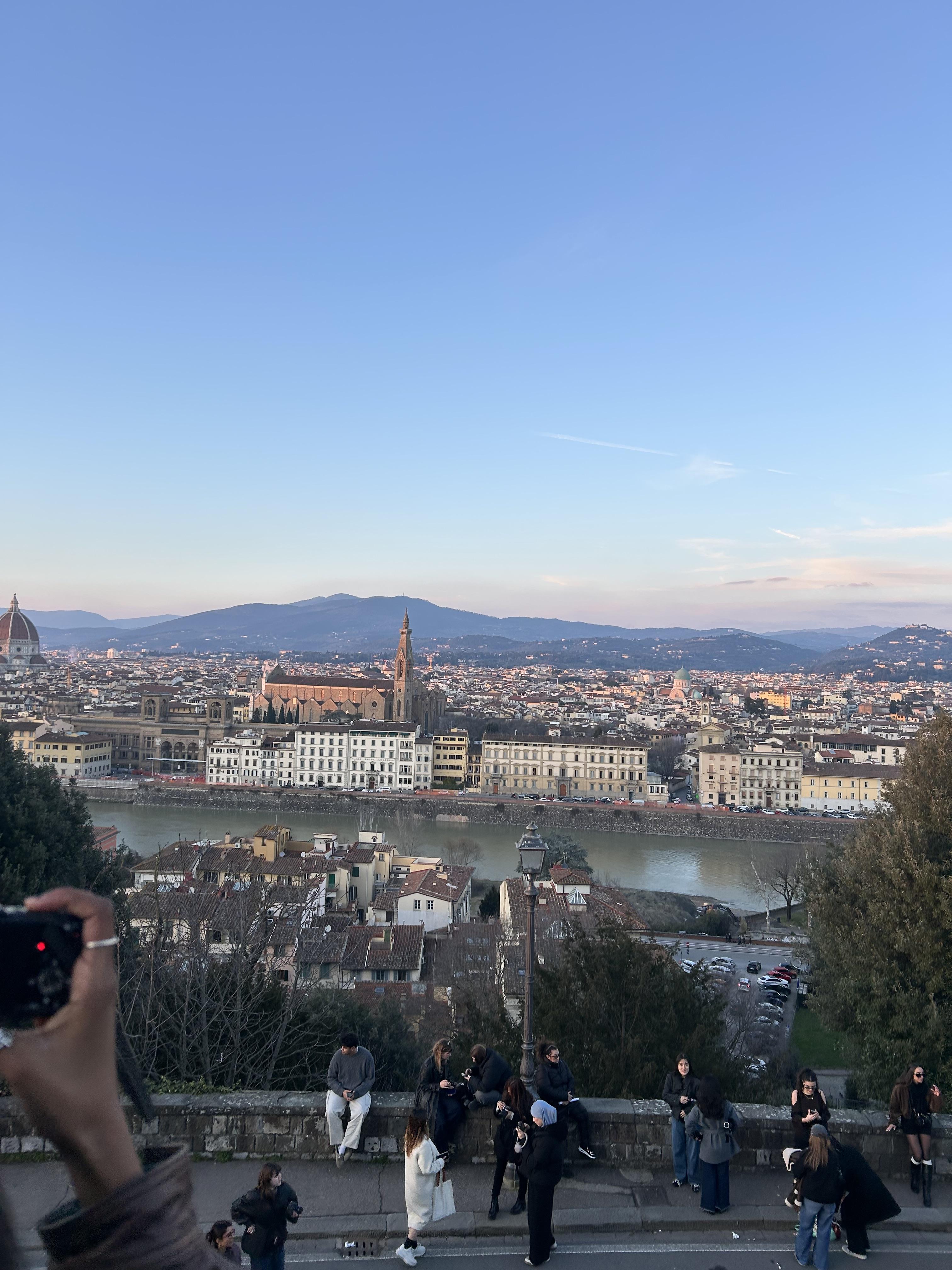 Some friends and I watched the sunset at the Piazzale Michaelangelo. This is a beautiful terrace that looks over Florence, with a long staircase of marble for people to sit on and a gorgeous layout of trees and views. This was an evening where it finally wasn't raining, so we could watch the sunset perfectly over Florence. While it was a little crowded, it was magical to walk up the long hill through the trees, watching the sun go down and the moon rise high into the sky.