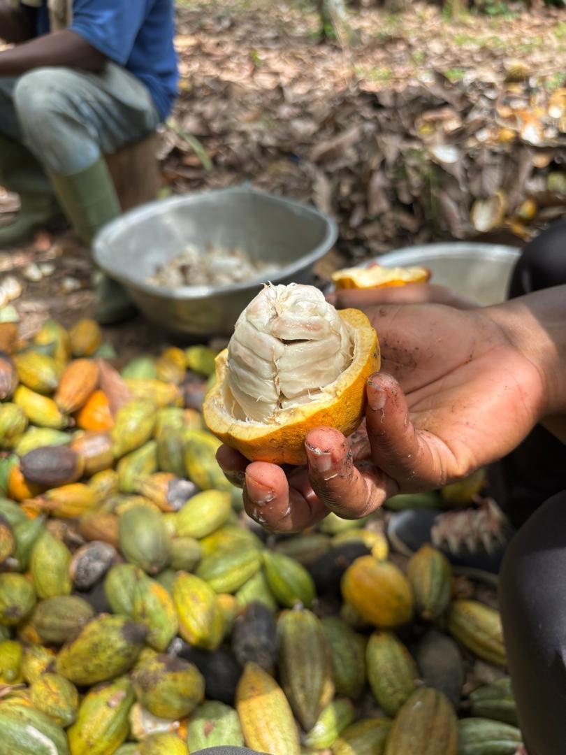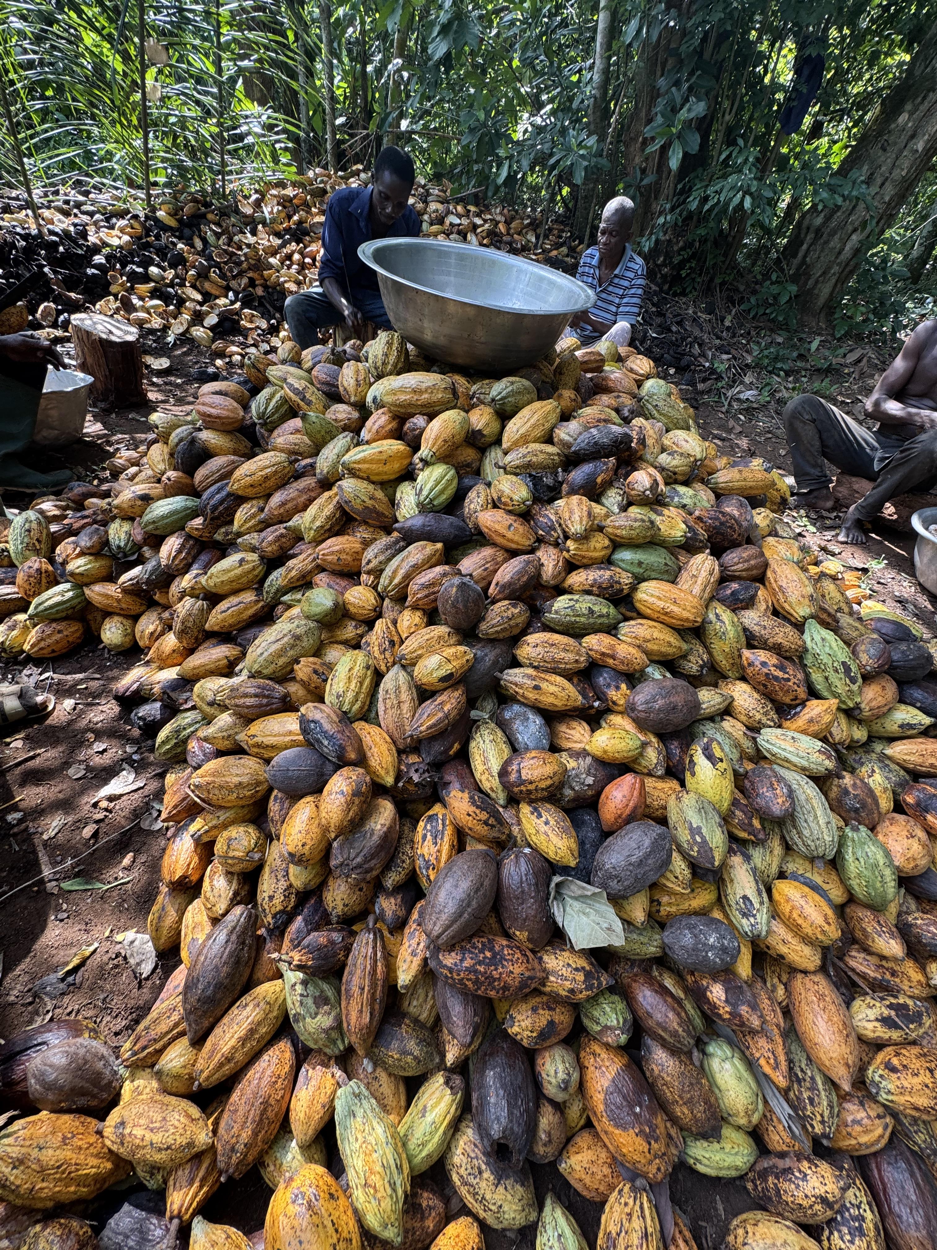 I live in a cocoa farming village in Ghana, which means almost everyone here is a cocoa farmer. There are about 500 people, including kids, and during cocoa season, you can smell chocolate everywhere you walk! Cocoa trees grow tall with big green leaves, and their colorful pods are filled with seeds covered in sweet, sticky pulp. I had the chance to help harvest the pods and taste the pulp myself, and it was juicy, fruity and delicious. Here’s what it was like to try chocolate straight from the tree and see how it’s grown in Ghana.