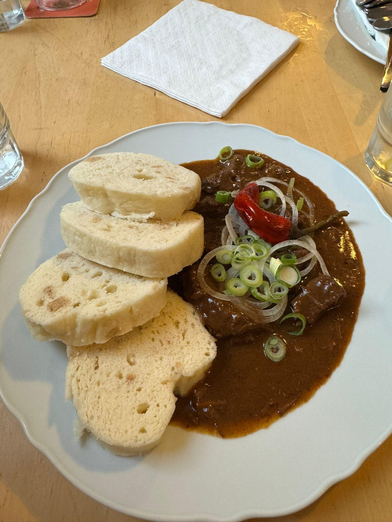 Before arriving to the Czech Republic, my exposure to Czech food was very limited! This meant that everything I have tried has been new. When I asked my coworkers what I should try first, they all suggested Knedlíky, a traditional Czech dumpling that is one of the most popular dishes across the country. I've had dumplings before, both in Asian cuisine and in a personal favorite dish, chicken and dumpling soup, but Knedlíky are truly unlike anything I've tried before and were an unexpected surprise. Since living in the Czech Republic, they have become a staple in my diet.