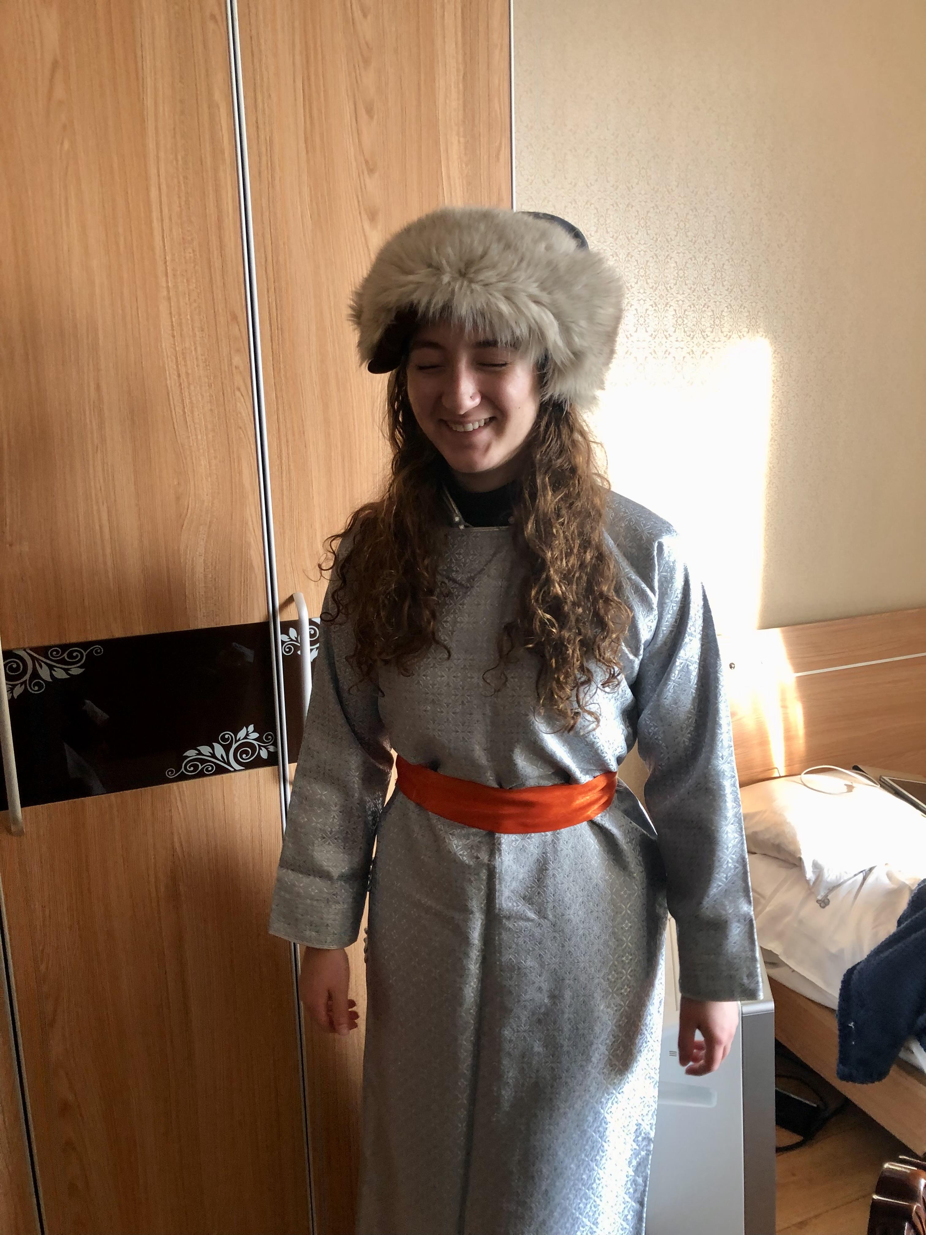Naadam is a summer festival that happens every year in July. This tradition is a celebration of summer, which is fleeting (very short) in Mongolia. Throughout Naadam, people gather together in big centers to watch various Mongolian traditional sports, like archery, horse racing, and wrestling. Naadam is typically celebrated for three days and originated as a way to train the military in the Chinggis Khan era. (This is another way to spell Genghis Khan. Have you heard of him?) During this holiday, you can see lots of bright colors and patterns, which is a way to show national pride.