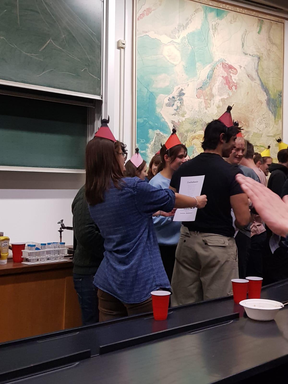 Just last week, I was introduced to a tradition in Germany among geologists, which is the celebration of Barbarafest. St. Barbara is the patron saint of minors, artillerymen and geologists (a strange combination), but her saint day is celebrated very diligently by all geologists throughout Germany. Our department here in Kiel threw a small party in her honor, and I learned that I had to become "baptized" by Barbara in order to be recognized colloquially as a geologist by other geologists in Germany. So I attended the festivities, wore my silly hat and was baptized! I received a new name: Ferrosilicat (ferrosilicate), which is now my official geological nickname. It was nice to be officially welcomed into the group of geologists in Germany and, while a little bit silly, the experience was really fun!