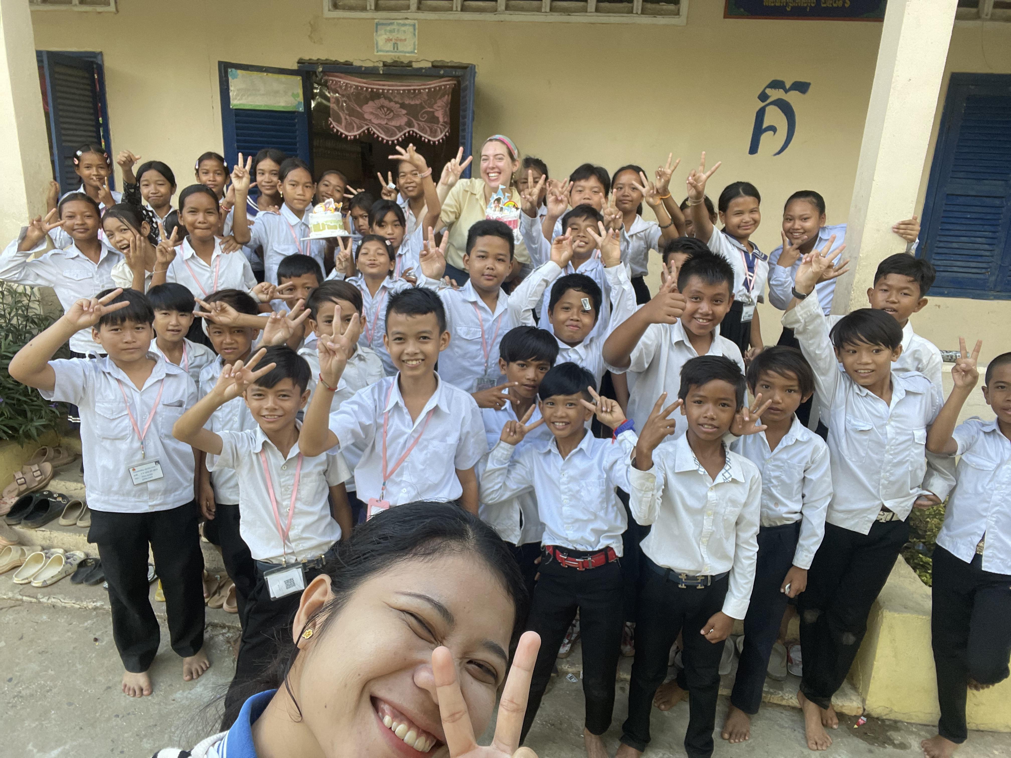 I currently reside in a small community in Cambodia, a country located in Southeast Asia. Cambodia is hot most of the year, and daily life looks very different from what I was used to at home. I work as an English teacher at a primary school, where I teach young students how to read, write, and speak English. I also work with Cambodian teachers, supporting them as they teach English in their own classrooms.
