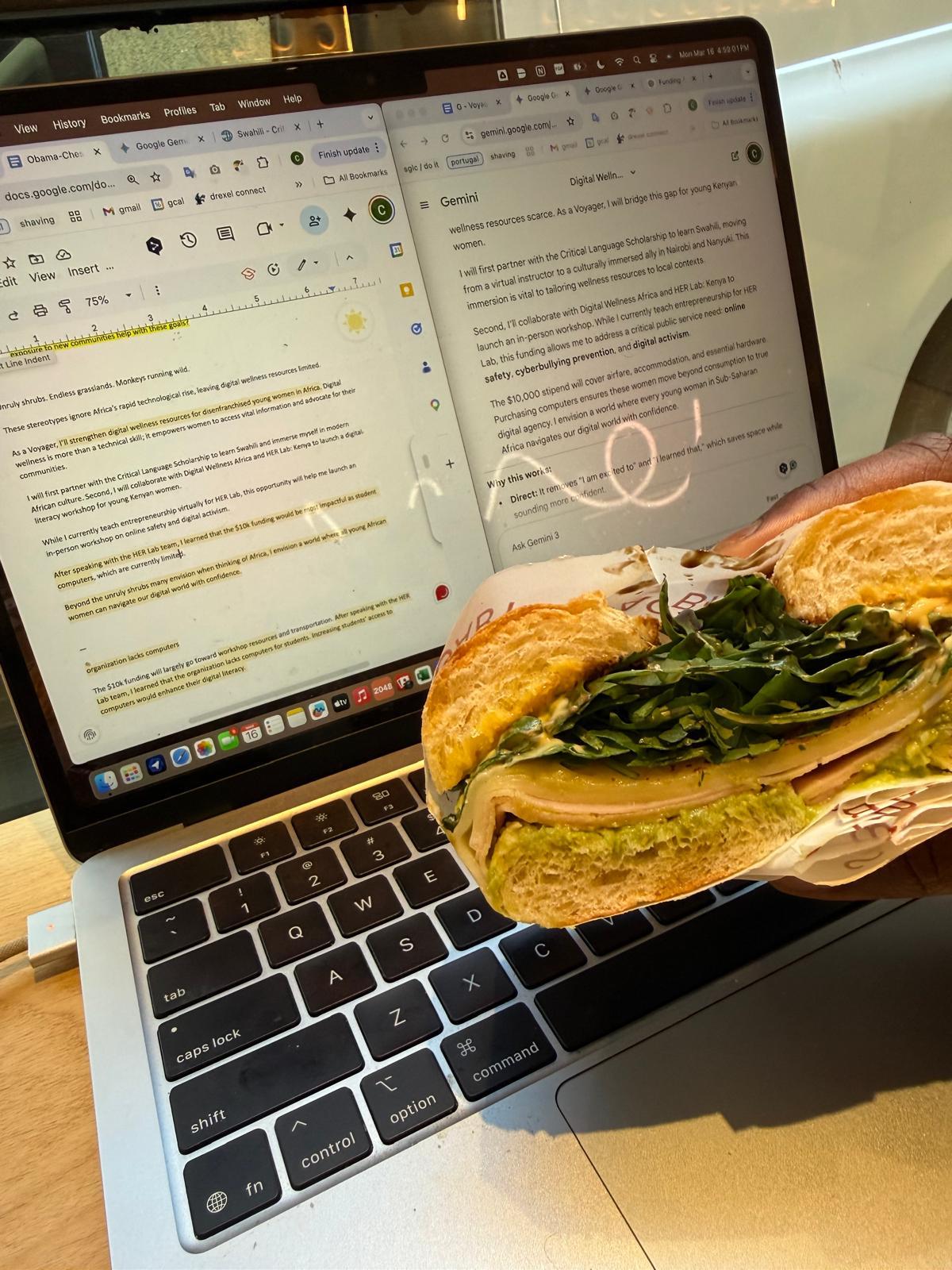 The first taco I chose is a taco al pastor, or a marinated pork taco with onion and coriander (an herb). I also got a taco de cochinita pibil, which is a taco with marinated pork leg and purple onion. My final taco was a taco de tinga de pollo, or a grilled chicken breast taco. These tacos were all delicious, but my favorite was the taco de cochinita pibil.