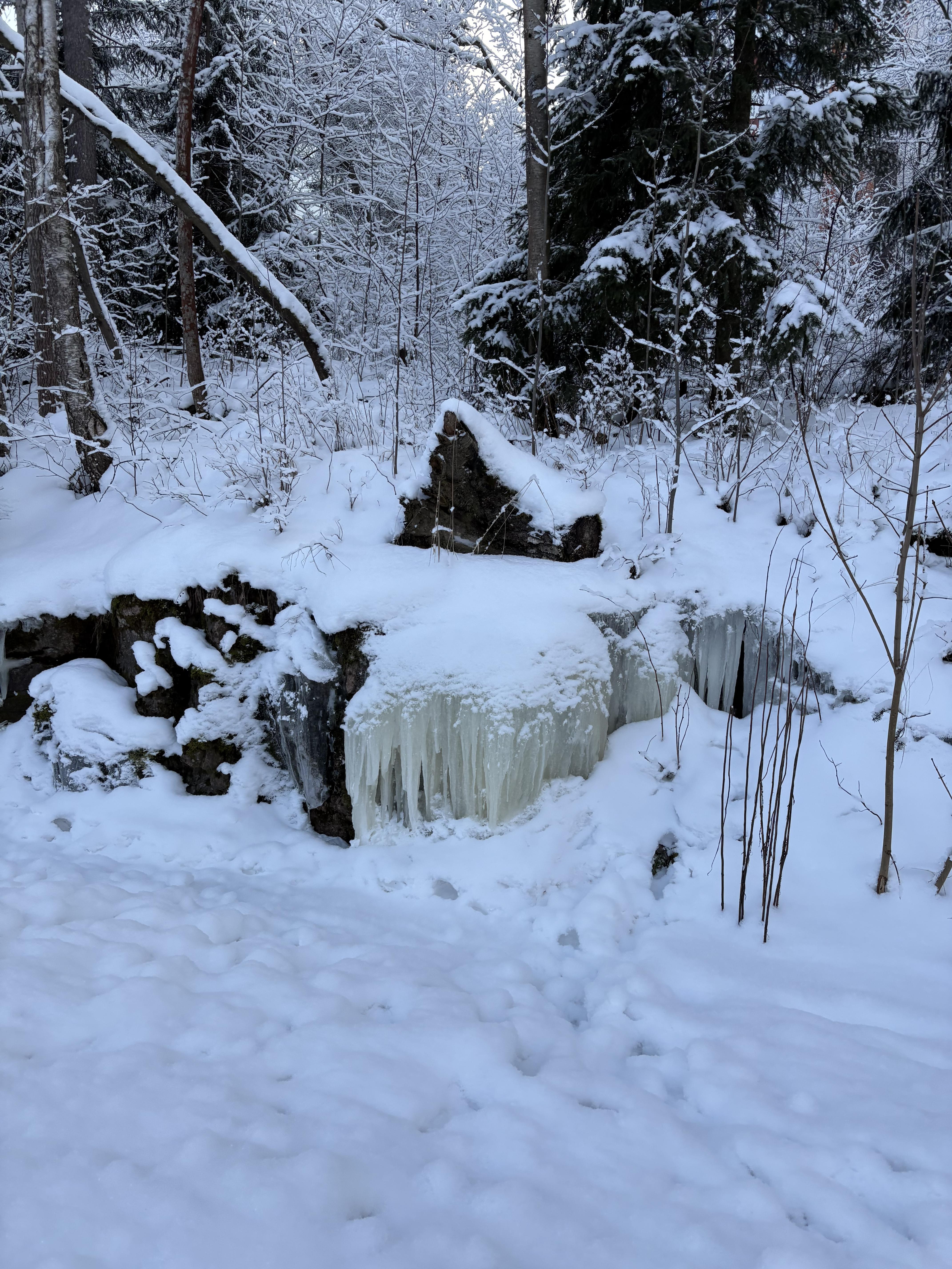 There was running water frozen in a really cool pattern off the side of a walking path. I thought it looked really unique, and you can see it in my Logbook photo album.