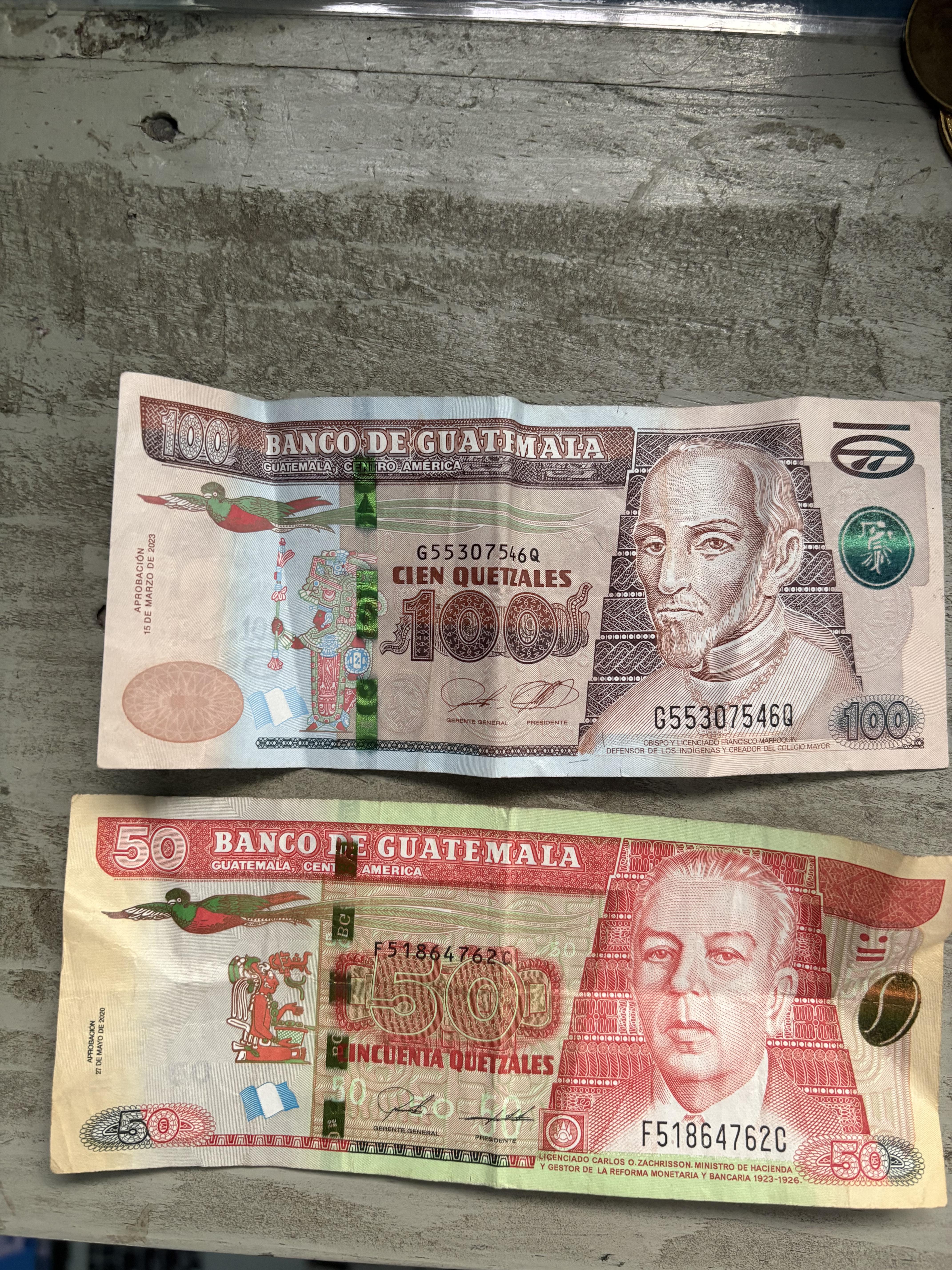 In Guatemala, they use the Quetzal as their form of money. At the current exchange rate, for every US Dollar you would get about 7 Quetzales. The cool thing about their currency is that it is named after their state bird, which is the Quetzal. It is a vibrant red and green bird.