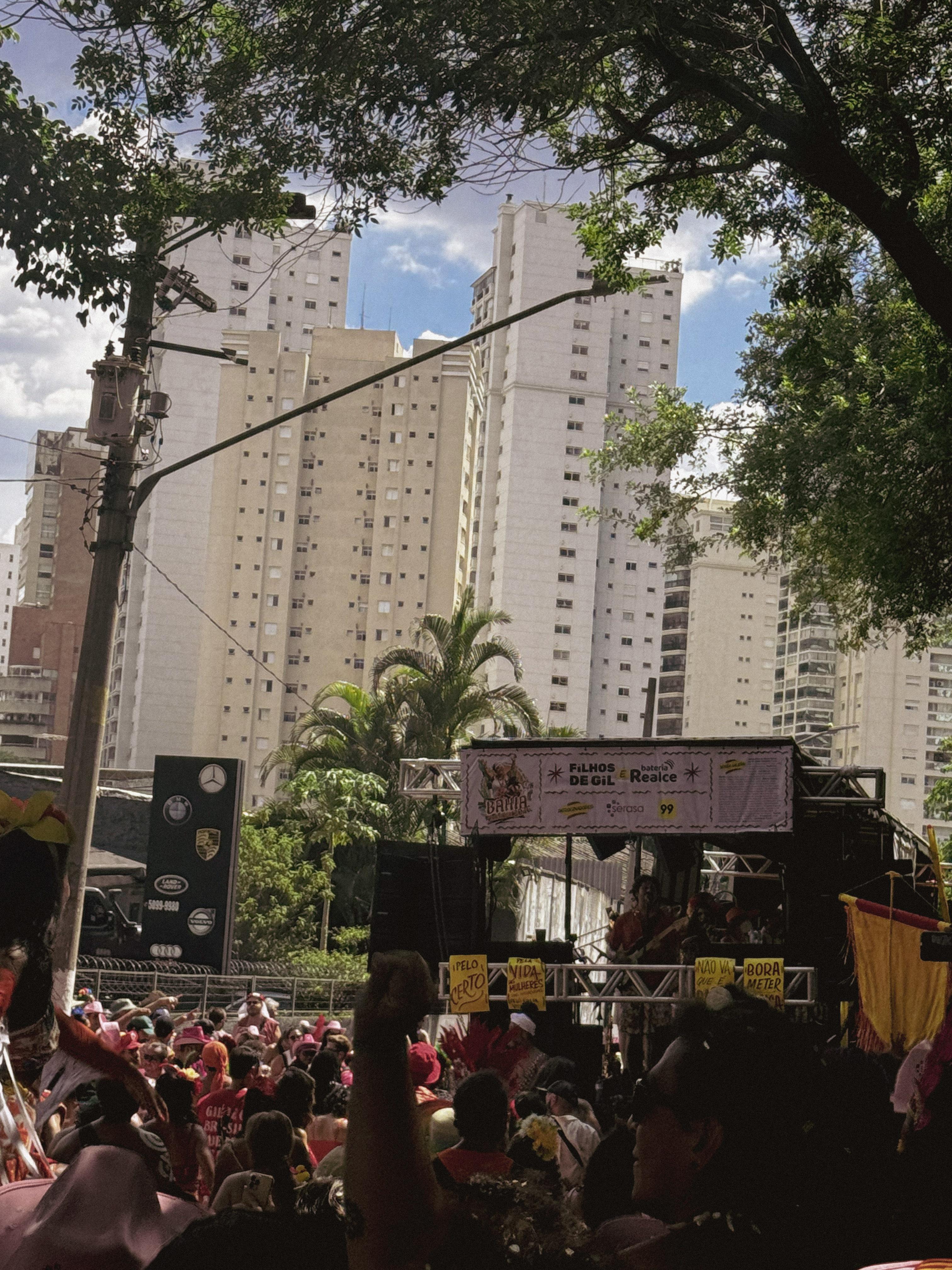 In major cities like São Paulo and Rio de Janeiro, entire city blocks come together and throw giant parties called bloquinho where bateria groups, a type of live band, play samba and popular music.