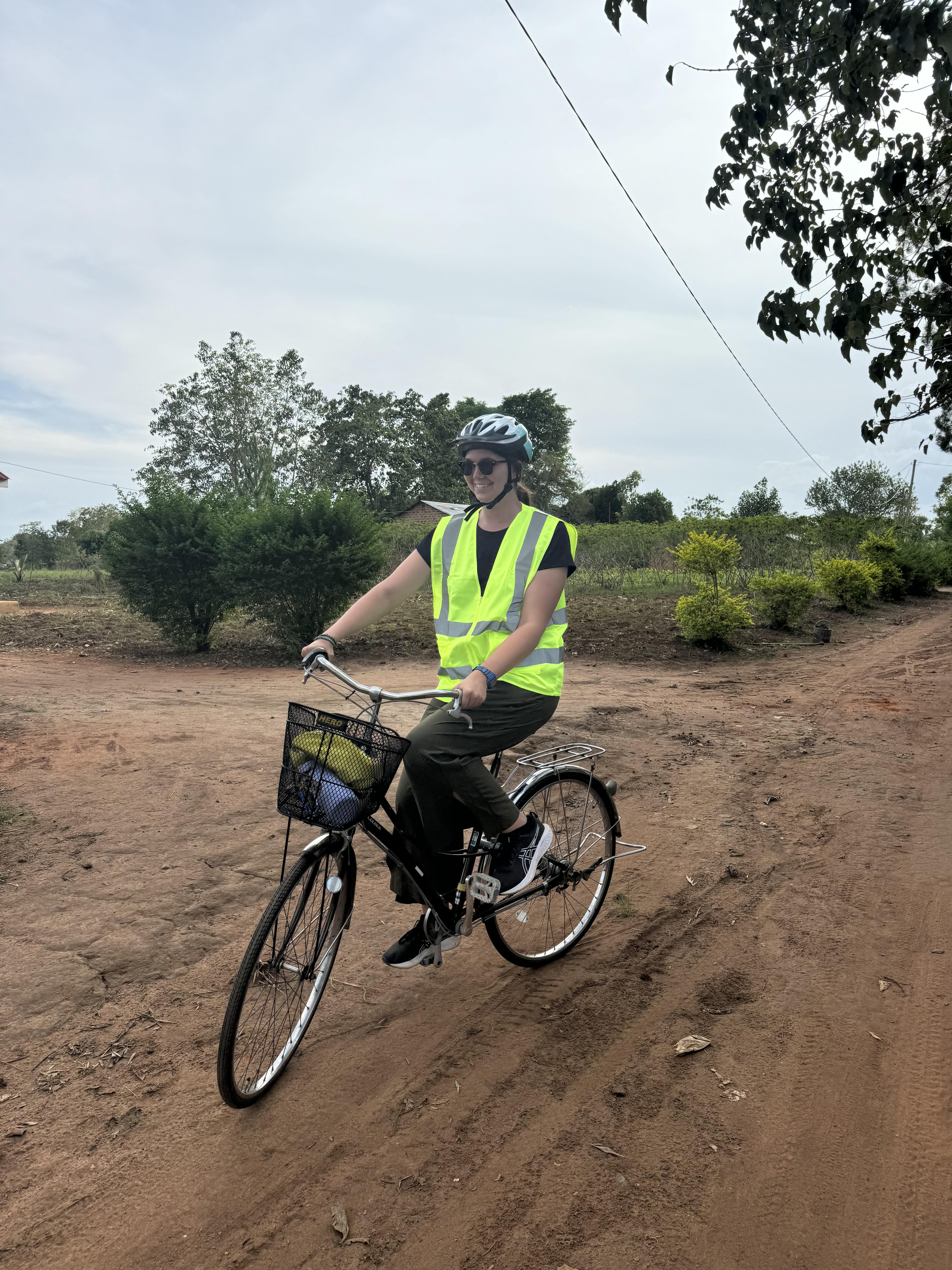 In Pennsylvania, I lived in a small, rural town. There were no bicycle paths like there are in some suburban and urban areas. While I would ride a bicycle for fun in the United States during summertime, I was used to driving a car to get to school, buy groceries or visit my friends. This daily habit changed for me, and I now rely on my bicycle to get the things I need. At first, this was challenging because my village has uneven dirt roads, which can be hard to peddle. I also had to become more patient, as riding up the main road takes about half an hour. Whereas in the United States, I could drive five or ten minutes and be at a grocery store. Over time, I have learned to enjoy riding my bicycle. It is a time for me to reflect on my days and greet people passing by. I am grateful for the ability to ride my bicycle, even though, at times, it can be hard work.