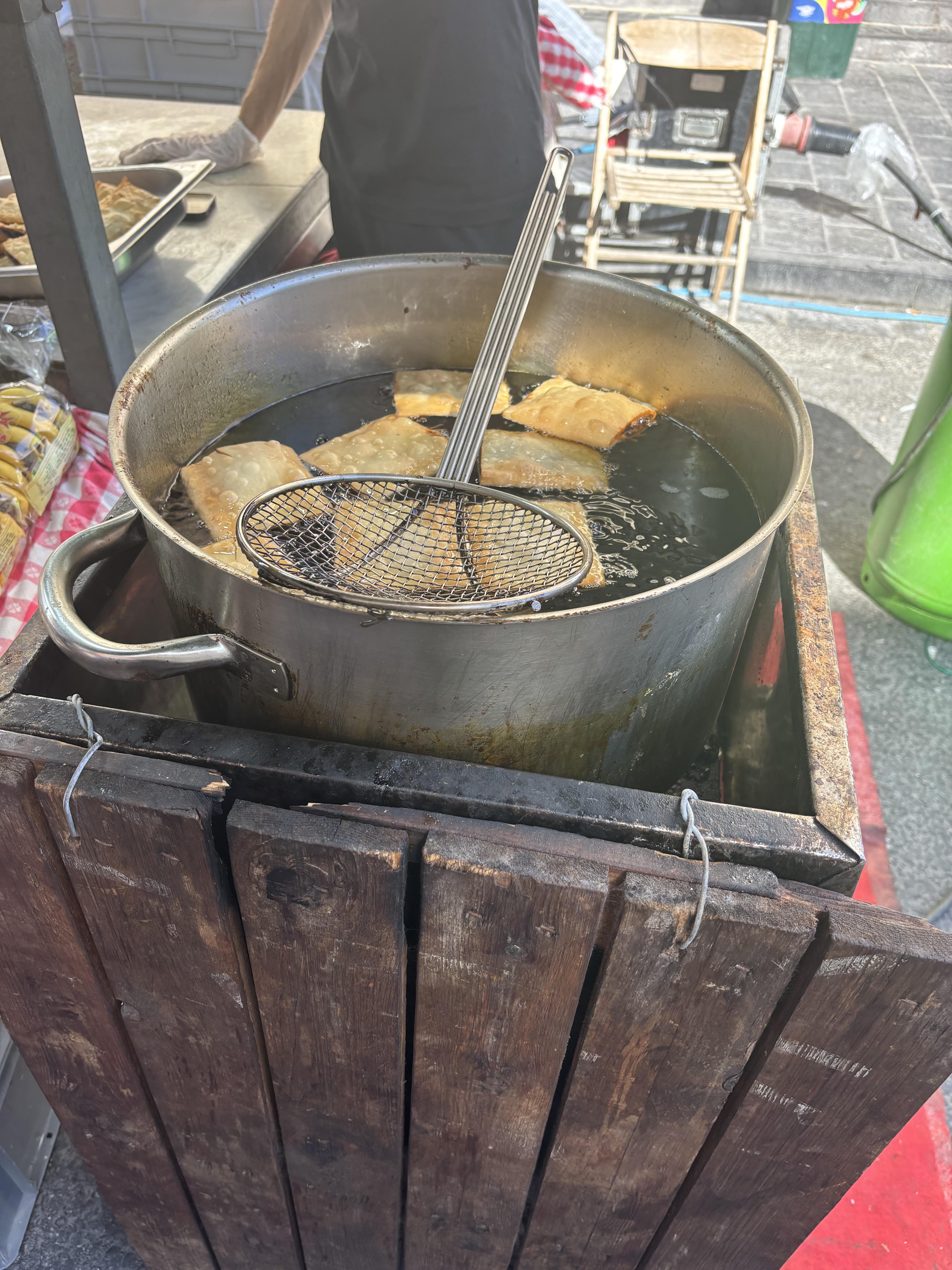 I have tried quite a few different foods, but I still aim to try new foods every day! Two dishes I have had the most often are called pastizzi and imqaret. Pastizzi is phyllo pastry (thinly layered flaky pastry) stuffed with traditional fillings of either local sheep's ricotta cheese or mushy (mashed) peas, a nod to Malta's former British colonization. (The British ruled Malta for about 150 years before Malta gained its independence, and British culture is one of many that influence Malta today.) Imqaret is also made of phyllo pastry, which is folded with a date filling and then deep fried in oil. Both are delicious snacks and never cost more than 50 cents each, so they are perfect to grab on the go!