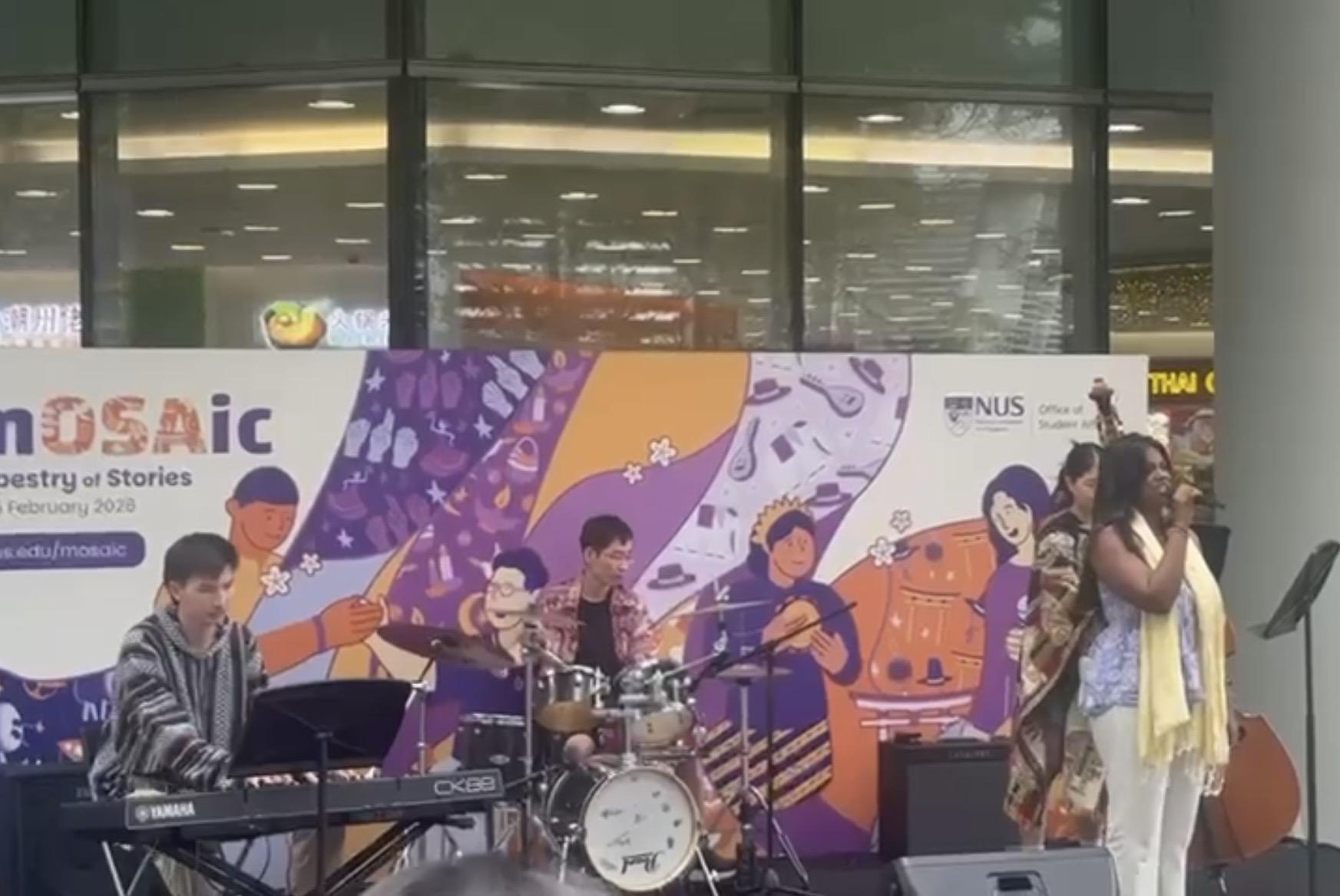 Music also tends to appear during moments that feel more like celebrations. At my university in Singapore, there are sometimes wellbeing days where the campus organizes events for students. At many of these, there is some form of live music playing while people walk around and talk. Even the dining hall sometimes brings in musicians or speakers for special nights. On normal days, it's just a place to eat dinner, but when there's music, the whole room suddenly feels more festive. I also saw a band playing outside one of the residence halls during a celebration near the end of Ramadan, which made the area feel like a gathering place instead of just somewhere people pass through. It's the prescence of music in these special moments that makes it so much more of an interesting phenomenon. When you do hear it, you know something special is going down.