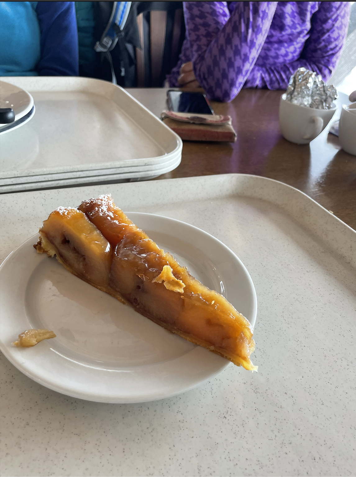 After I ate the main dish, I went back and ordered a pie! The pie was one of the best things I ever eaten. I already had the rich flavors of the meat and sauerkraut, which paired perfectly with the tart and sweet pear pie. The pie was crunchy on the outside and soft on the inside, making it the perfect dessert after such a long hike.