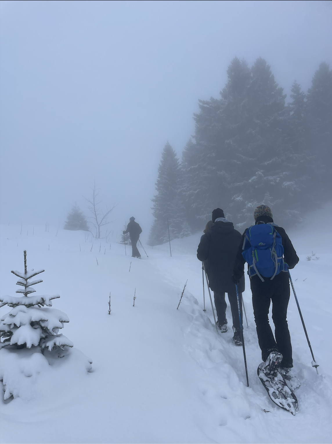 At the top of the mountain, I enjoyed eating a savory dish of meats, different sausages, potatoes, and choucroute. When I ordered at the counter, I told the woman working, “Je voudrais une choucroute”. “Je voudrais” means “I would like”!