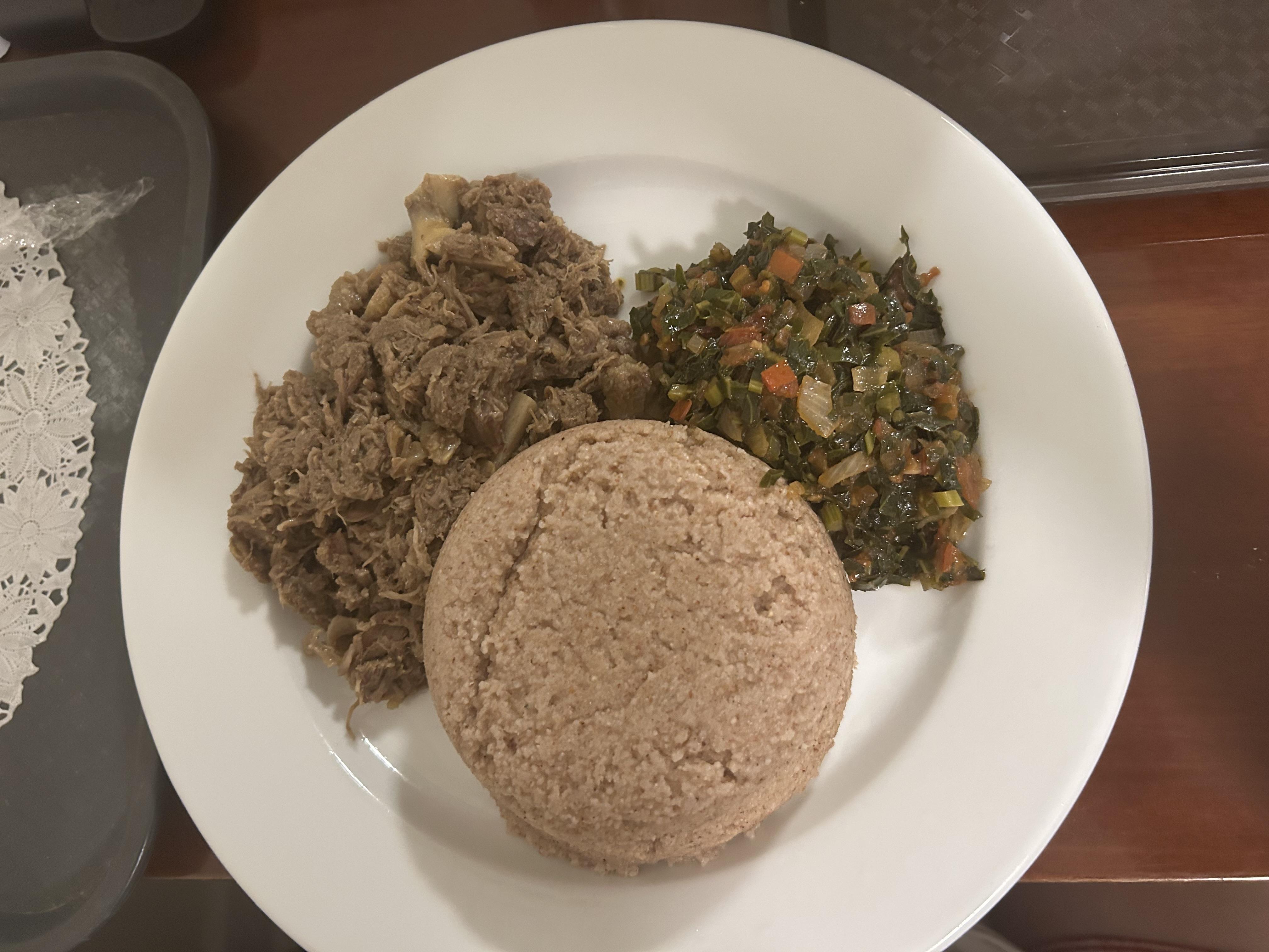 For a snack here, many locals like to eat mopane worms. Botswana is also a tropical place, being very hot between January and April and being cooler from May to August. This means that here in Botswana, they very often have mangos. Last, but not least, is dinner, which typically consists of meat, some kind of starch and a vegetable. Botswana is a very game-heavy culture, meaning that they eat a lot of meat. They have the typical meat we have in America, such as chicken and beef, but their unique meats are seswaa and oxtail. While I have not had the opportunity to try oxtail quite yet, I have had the opportunity to try seswaa. Seswaa and pap is Botswana’s national dish. Another common starch they mix with seswaa is mabele, the whole wheat version of pap.  For dessert, they will typically have fat cakes, which are sort of like the Botswanan version of doughnut holes from the U.S. I have not had the opportunity to try fat cakes quite yet, but I have heard that they are very delicious. Apparently, they are the best when they come from local street vendors.