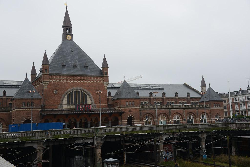 (Hoved)banegård - (Haupt)bahnhof - (Central) train station (so "v" is more like a really subtle "w" in the middle of words in Danish, but if nothing else just ignore it. Hovedbanegård sounds like "hoh-bayn-goh", with choppy pauses where each dash is).
