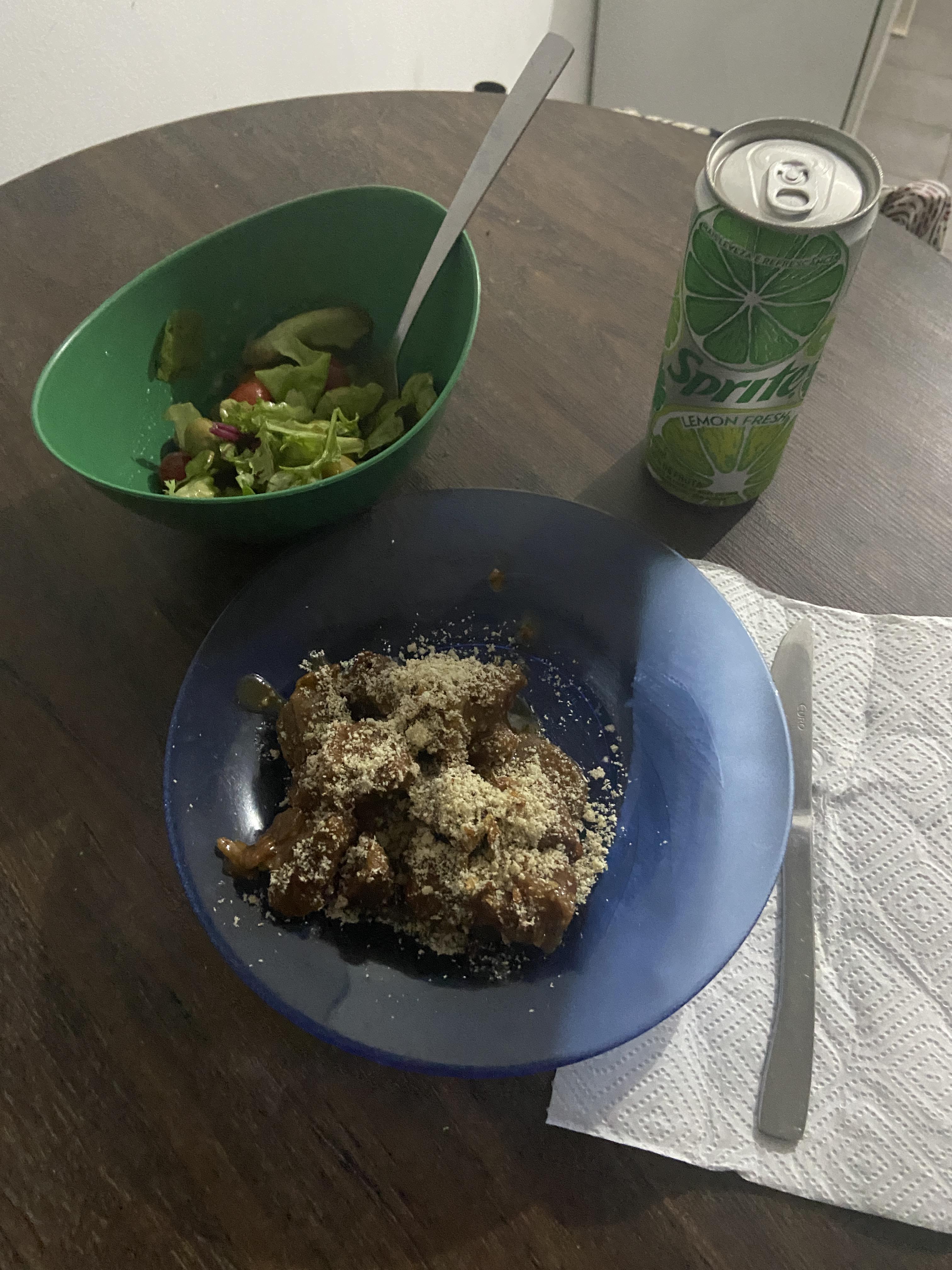 Todos los elementos del plato pertenecen a lo que está disponible en el país. Principalmente, Brasil, como otros países del Cono Sur, tiene muchas granjas ganaderas. Por eso, es común que los brasileños coman mucho bistec. También la mandioca es nativa de esta tierra, comida por miles de años y una parte importante de la cultura brasileña. Aunque no se cultiva mucho en el estado donde estoy —Mato Grosso—, la mandioca se produce en otras partes del país. Dado su tamaño, Brasil puede producir muchos productos agrícolas a nivel nacional. Cuando vivía en Río de Janeiro, conocí la mandioca con otro nombre en portugués: aipim. Esta palabra solamente se usa en Río de Janeiro y el sudeste. También se llama macaxeira en el noreste. Sin embargo, Rondonópolis está ubicada en el centro-oeste, entonces “mandioca” es el nombre apropiado.