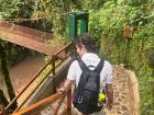 I took about an hour and we got a ride from someone going up the road about halfway through. The path was full of the tropical plants and flowers and more butterflies than I have ever seen in my life. Once we got there, we got to go swimming in the water and explore some of the rocks underneath it.