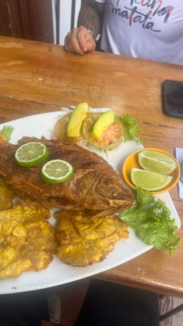 La verdad es que a mi no me gusta mucho el pescado. Otros mariscos como camarones sí, pero el pescado no. Pero cuando tuve una oportunidad para comer mojarra frita, estaba muy muy contento porque significaba que estaba afuera de mi pueblo dónde viví y probablemente en Barranquilla o en la playa. La primera vez que probé la mojarra frita estuve un poco preocupado porque nunca había comido un pescado entero así, pero ahora me encanta. Creo que es porque solo la como en ocasiones especiales. Aunque jamás he comido los ojos.