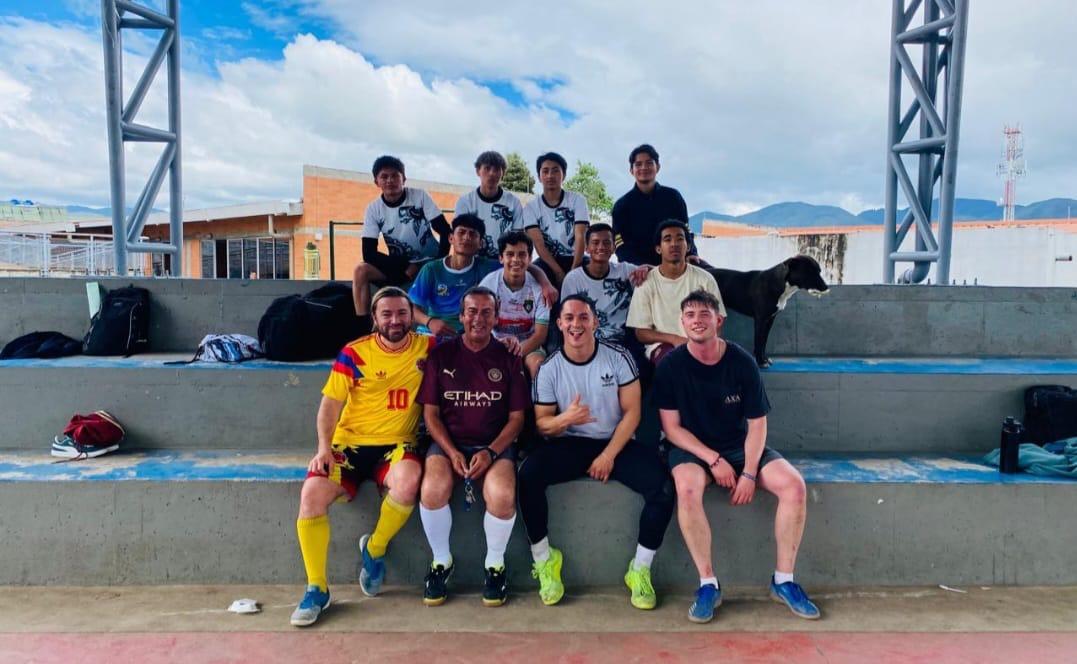 Esta semana jugué fútbol, que se llama micro acá. Mi trabajo acá es soy un docente de inglés en el colegio público. Tenemos un equipo de micro de profesores y a veces jugamos contra estudiantes de décimo o once. Esta semana jugamos contra una de las clases de décimo y ganamos.