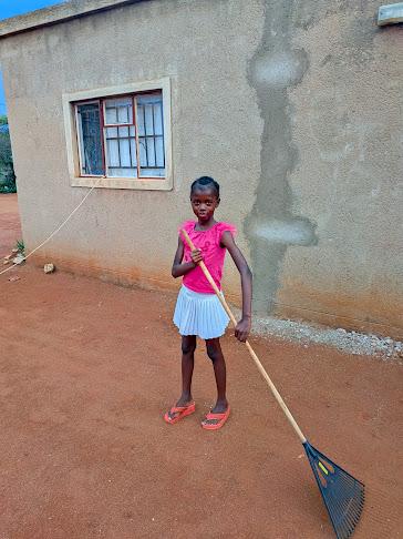 Alisha: "I dust the TV and stand, sweep inside the house and do the dishes."