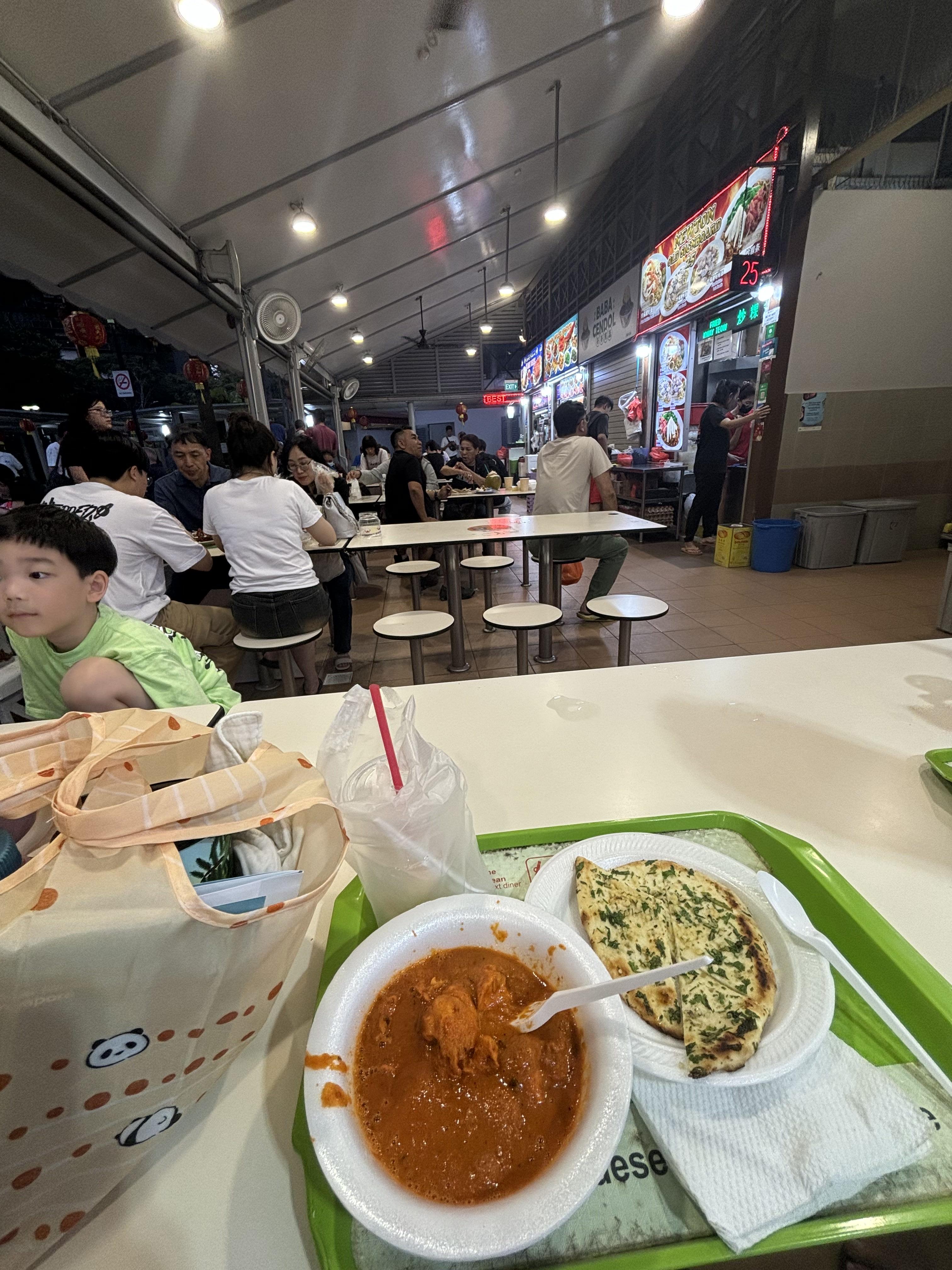 Singapore is known for food centers, also known as hawker markets. I went to one called the Newton Food Center that is famous for being in the movie Crazy Rich Asians. The best part about eating at a hawker market is that you can try many different things! I got two different kinds of juice (lychee and sugar apple), butter chicken, and garlic naan. Everything tasted so good! It was also much cheaper than most food in Singapore. The best part of this meal was where I got to eat it, though. I love experiencing unique eating experiences in new countries, like night markets or hawker food centers! (and Crazy Rich Asians is one of my favorite movies)