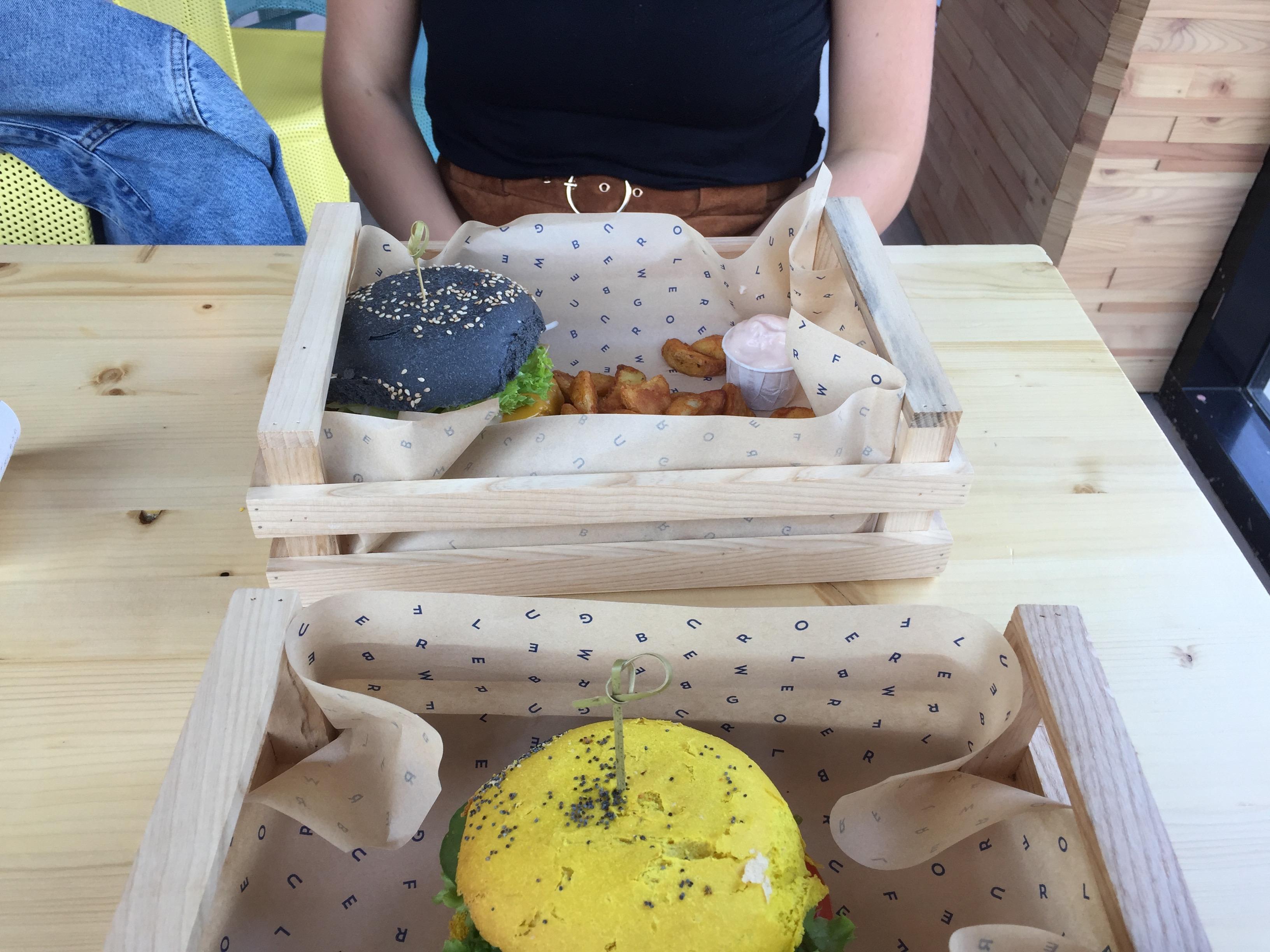 In Rotterdam, my friend and I went to a vegan burger place called Flower Burger. I ordered the spicy chickpea burger (yellow bun, chickpea and barley patty, tropea onion tartare, tomatoes, salad, spinach, spicy sauce).