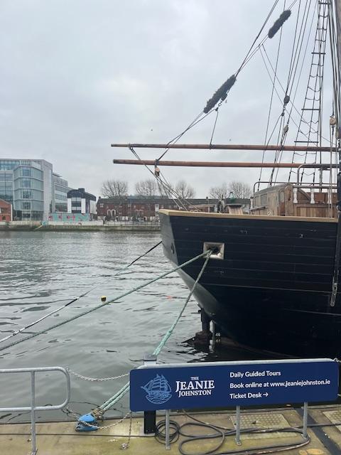 Sitting in the River Liffey, along the quays in Dublin's Docklands, is the Jeanie Johnston. The Jeanie Johnston is a tall ship built in Quebec, Canada in 1847. The ship currently in Dublin is a replica of the original boat. It took ten years to recreate it, and it was finished in 2002. It was originally intended to carry cargo such as tea, rope, and textiles. It was first bought by a family business based in the south of Ireland. However, the boat went on to supply a much different service.