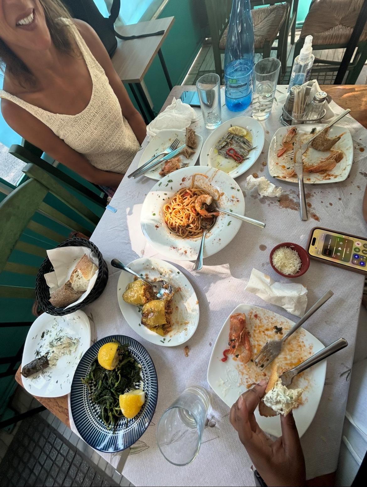 Additionally, one thing I have picked up about dining here in Greece is how much everyone shares food. Even when I go out with other students in my program, we all share each other's food, allowing everyone to get a taste of everything. This is something I was told by someone when I first arrived, and it is a custom that I really enjoy because trying new foods can be intimidating at times. Especially, when you are in a new place with completely new food and, most times, menus that aren’t necessarily in English or a language you can read or understand, it can be hard deciding what to eat. But the locals here have really been so warm and welcoming that you forget any fears that you may have had and just enjoy yourself!