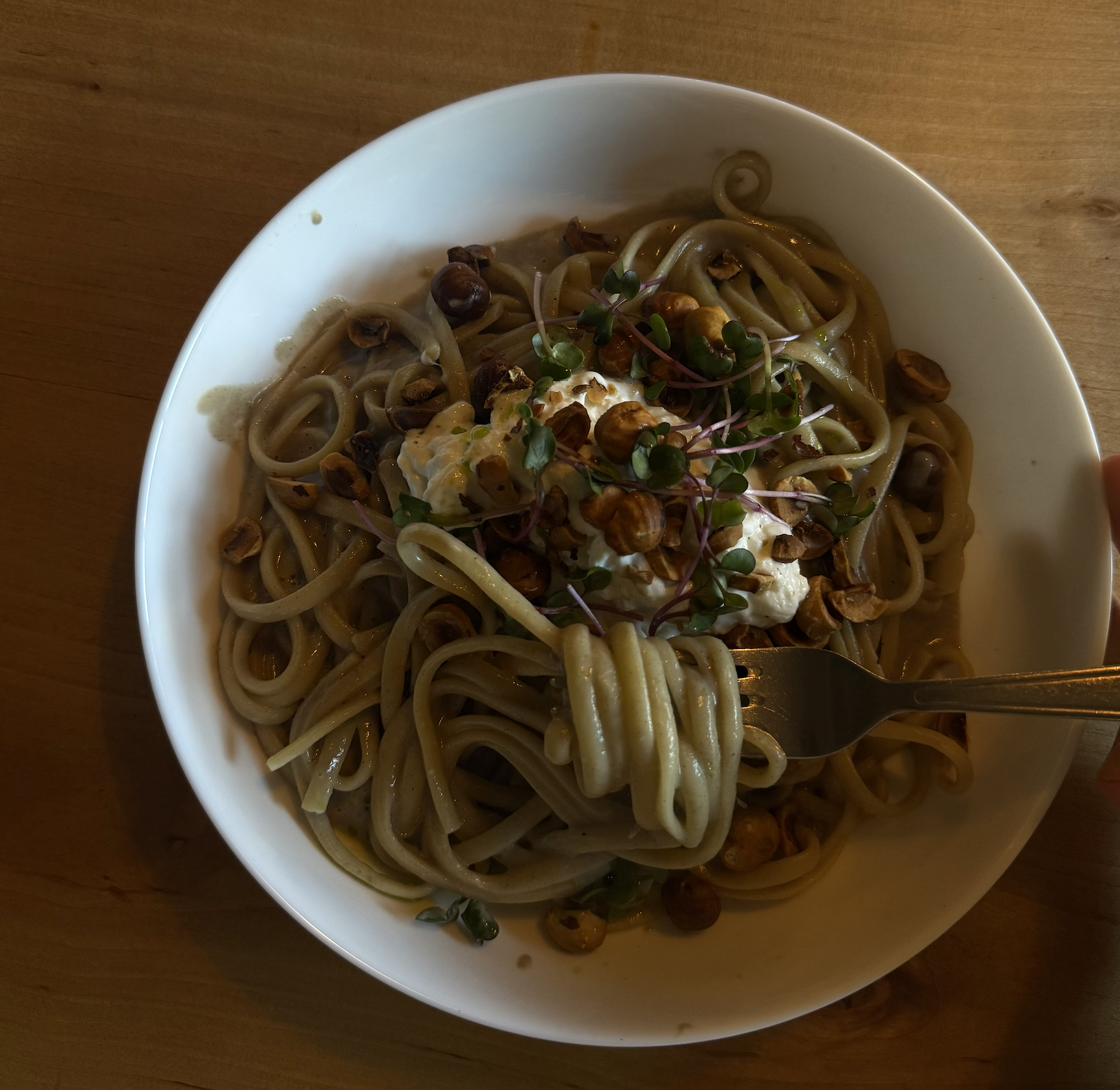 People often eat goulash with bread dumplings. The dumplings are soft and soak up the soup. I ordered my goulash at a restaurant in the Czech Republic.