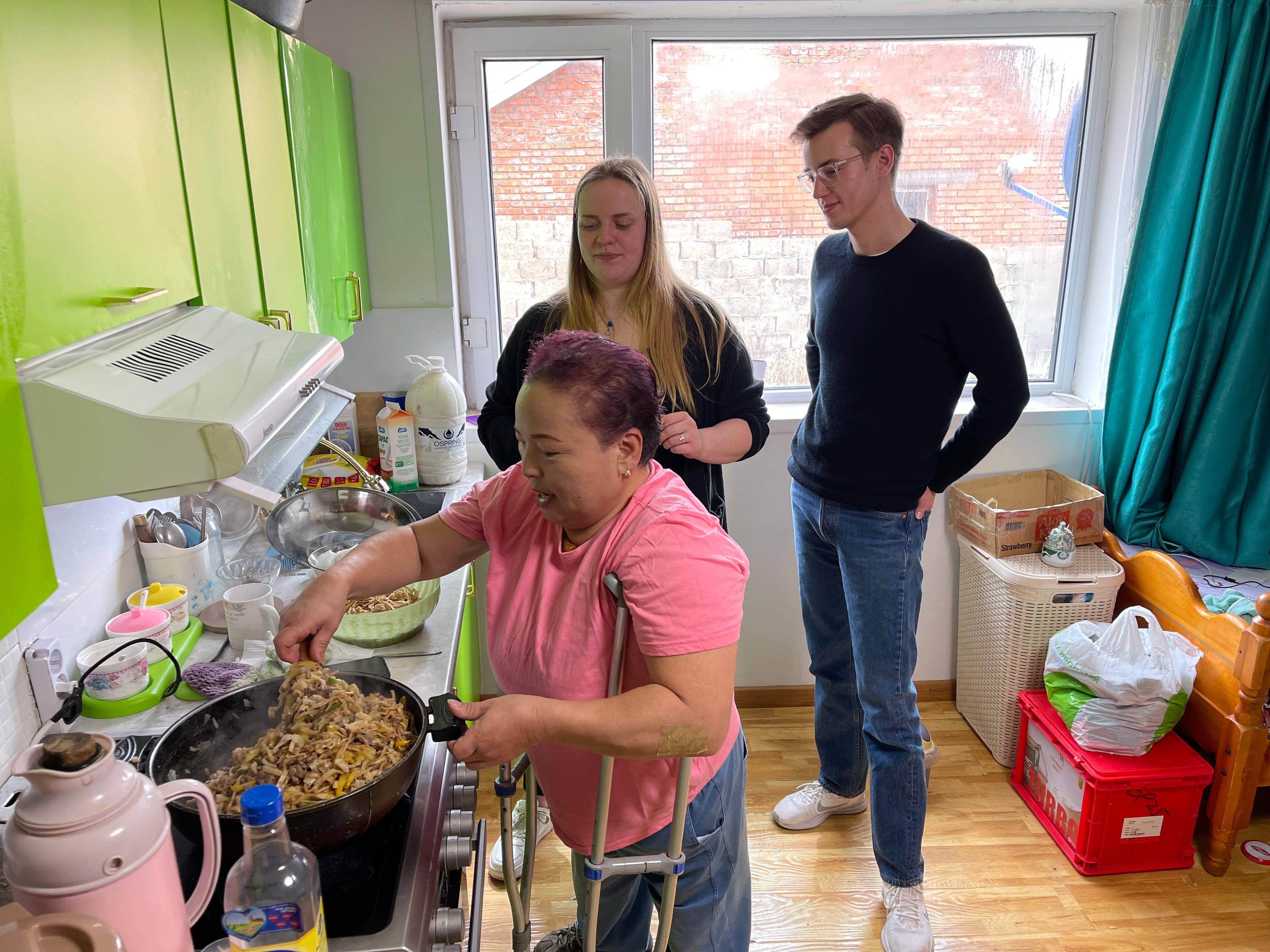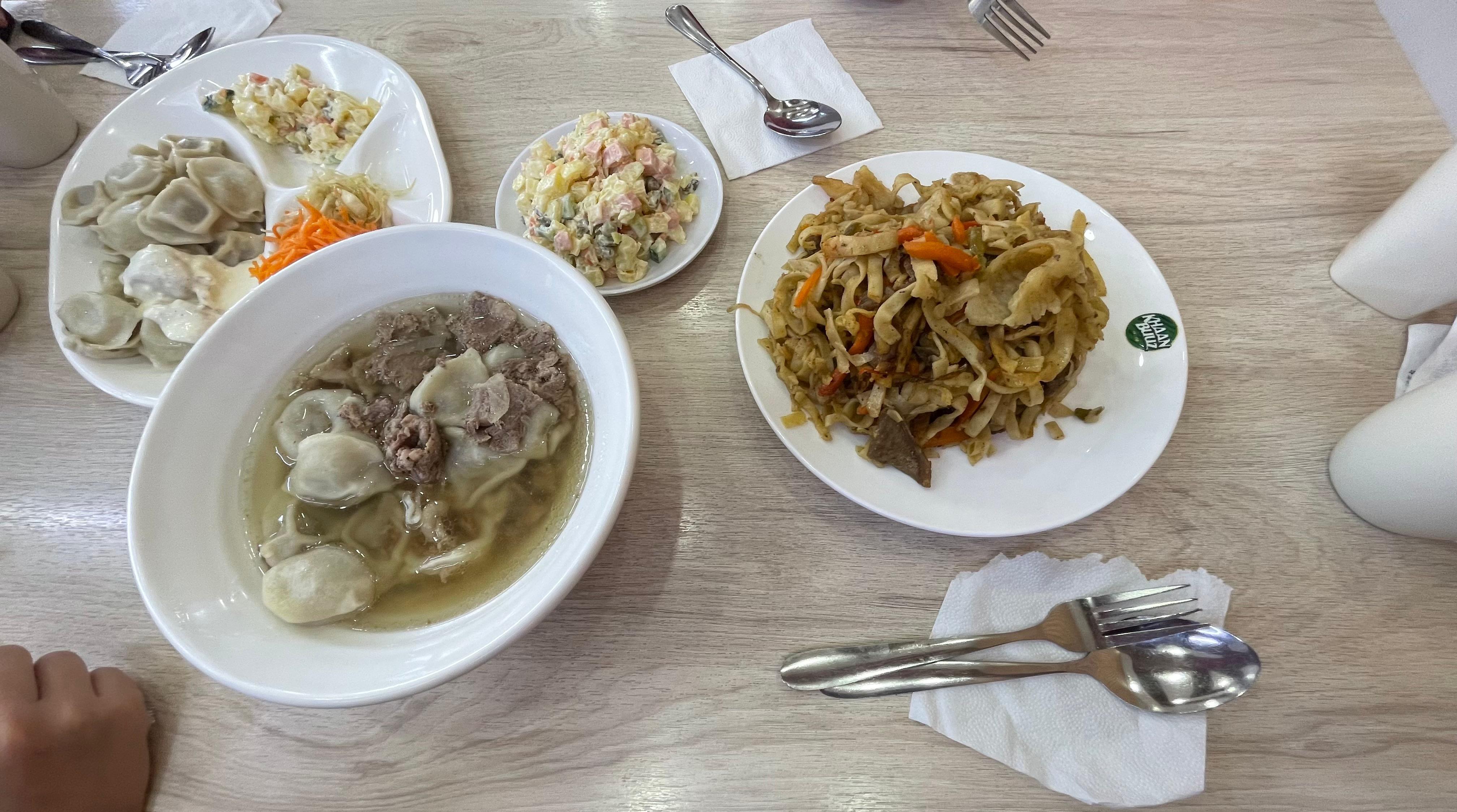 Two of the most popular Mongolian foods are buuz and khuushuur. Buuz are steamed dumplings usually filled with mutton, while khuushuur are similar dumplings that are fried. My favorite Mongolian dish, though, is tsuivan, a hearty stir-fry made with handmade noodles, meat, potatoes, onions and carrots. In winter, I especially enjoy suutei tsai, or salted milk tea. The salt might sound unusual, but it is warm, comforting and perfect for cold weather. For something sweet, I love sea buckthorn juice, made from a bright orange fruit I had never tried before coming to Mongolia.