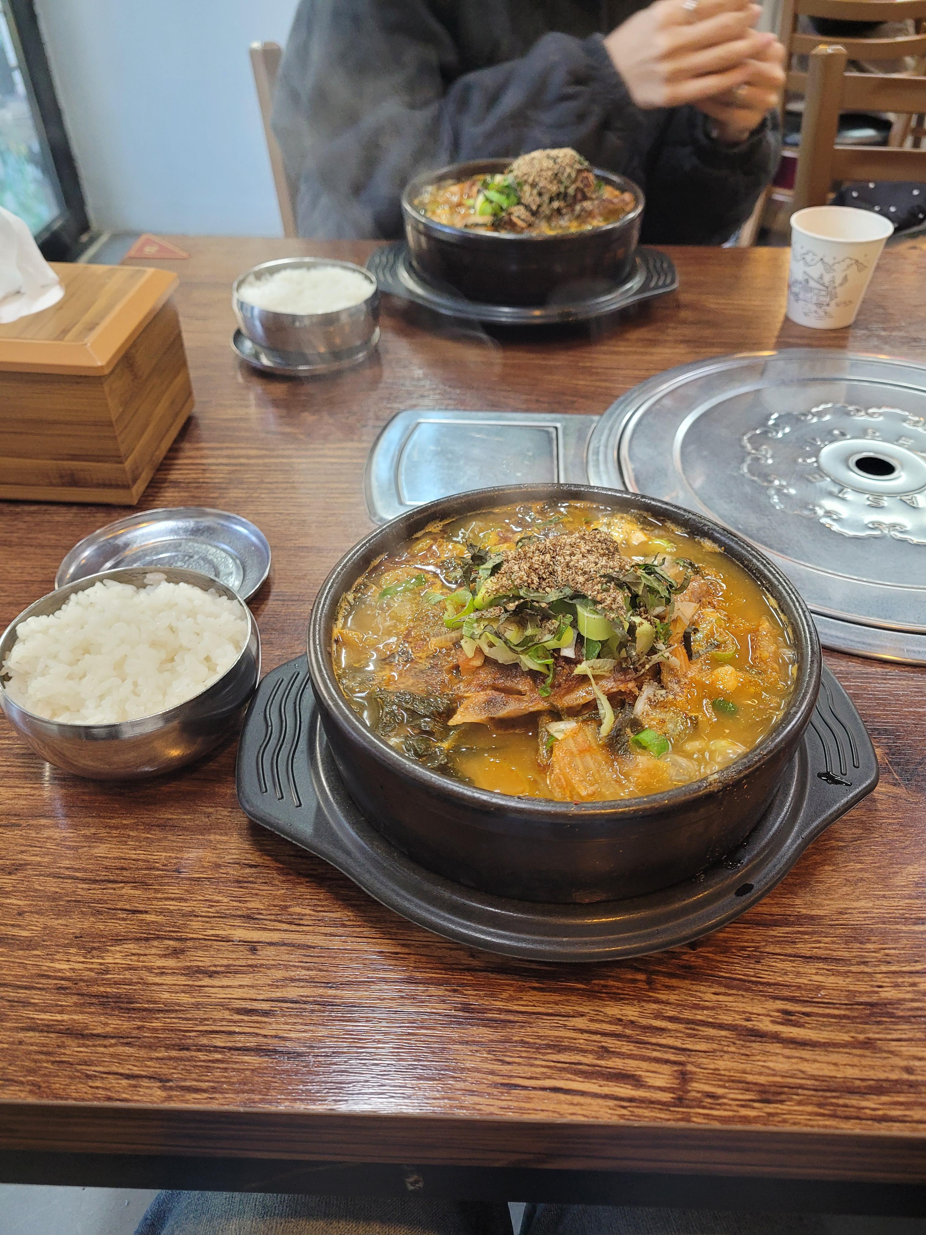 It felt like playing with my food, but it’s actually a totally normal and fun way to eat here. I also made sure to try kimchi jeon, a savory pancake that looks exactly like a pepperoni pizza but tastes spicy and tangy.