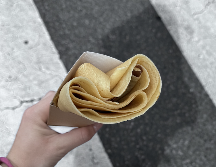 Food is not only what you eat, but how. And during those early days, I discovered two styles of Parisian eating. First, when they sit to drink coffee and enjoy some bread, eating is not their only goal; they take their time, don’t rush and they stop to take in and appreciate the city. On the other hand, on the more student-occupied streets, I remember the first time I saw a big group of students walking down the streets while eating their sandwiches or pizzas. I remember it was a little weird, because for me, lunch time is not only more than a sandwich, but also a moment where you sit and stop. Here in Paris, people eat for pleasure; they see food as company. Those first times I ate while walking made me see food differently, from a more tranquil perspective.