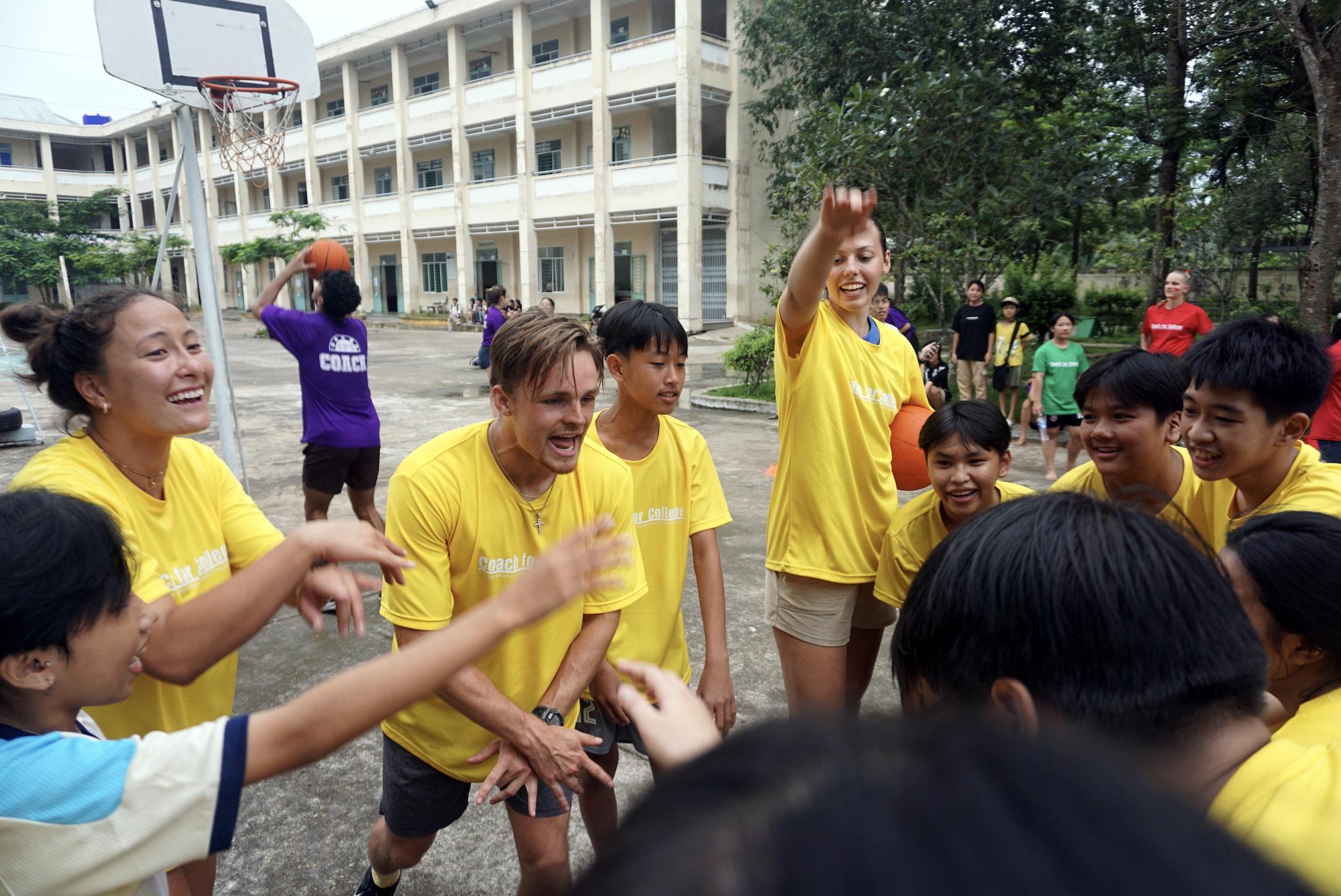 Finalmente, decidí asistir a Harvard College y jugar baloncesto allí. Estudié psicología, y más adelante me enfoqué en los sistemas y políticas educativas de distintos países. En mi segundo y tercer año sufrí dos contusiones muy fuertes, lo que me impidió continuar jugando al mismo nivel. Al final de mi tercer año, quería conocer nuevos países y culturas, y romper con la rutina estresante en la que vivía. Así encontré un programa llamado Coach for College, en el que pude viajar a Vietnam para trabajar con estudiantes universitarios estadounidenses y vietnamitas enseñando deportes, inglés, ciencias, matemáticas y un curso llamado “Habilidades para la vida”. El programa duró un mes durante mi verano, pero cambió mi vida para siempre.