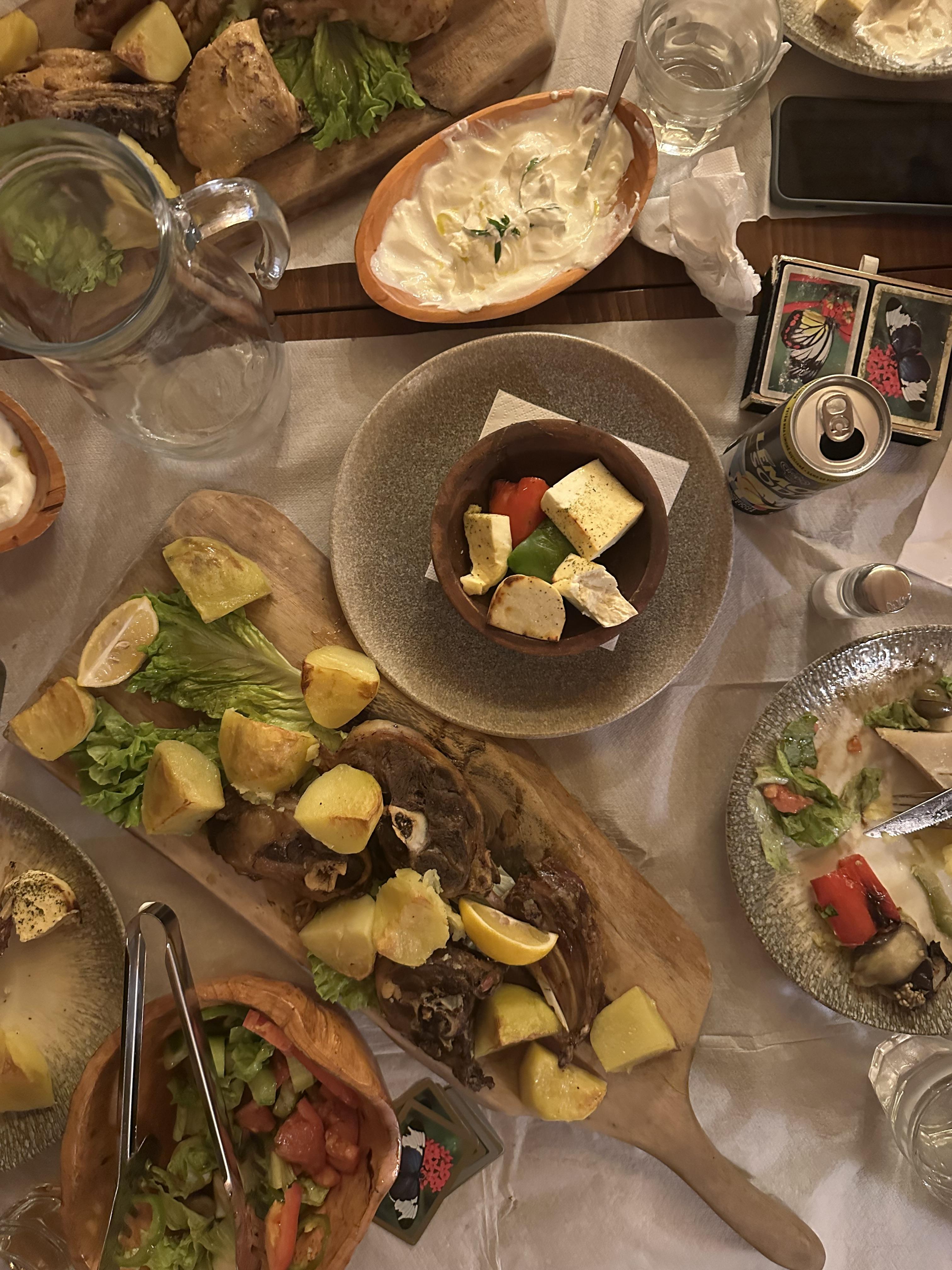 Every week, I usually buy my groceries from local street-side markets to stock up on fresh produce. Items here are often fresher and locally grown. It is also much cheaper to buy from these local markets than from supermarkets. All the dishes in Albania are shaped by their local environment! Cities near the Mediterranean Sea eat so much seafood, while cities further away, like Korçë, rely on corn because it is a crop that stores easily and is reliable in the winter months. Also, Albanians tend to only eat food when they are in season. Although you can find a lot of produce like strawberries year round, many people don't eat them unless they are in season because that is when they are sourced locally. Albania's climate is subtropical, featuring hot summers, mild winters and long growing seasons, which are ideal conditions for agriculture. Because of that climate, Albania can grow most fruits and vegetables on their own, making the country largely self-sufficient when it comes to produce.