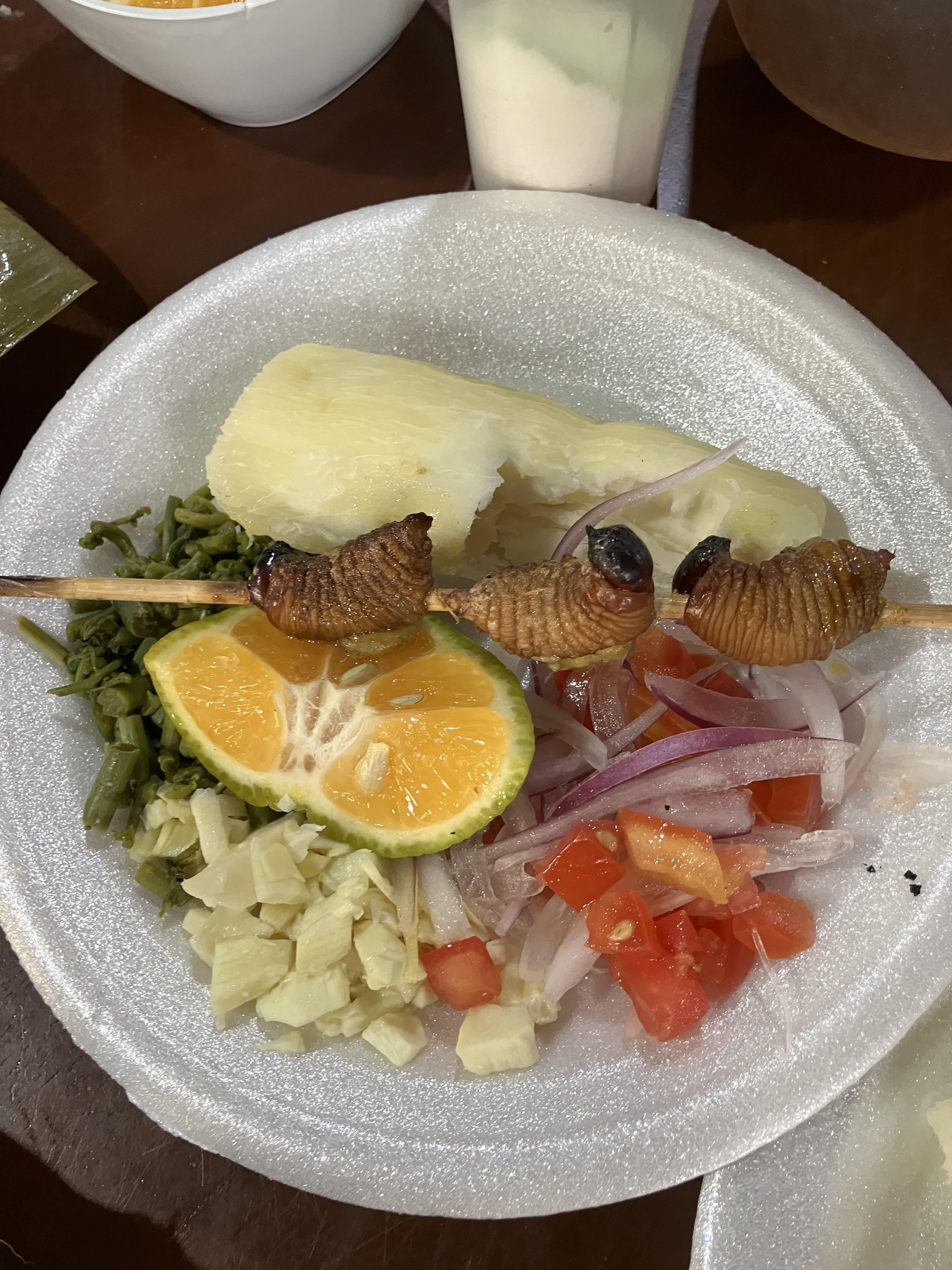 Chontacurros: Chontacurros son un tipo de gusano (worm) que la gente en partes de el Amazonas come. Más en los partes norte, en Zamora no es común. He escuchado que son muy saludables cuando se comen crudo. Me imagino que es verdad, pero no sé si voy a probarlos pronto así. Solo les he probado fritos. Saben cómo aceite y humo, nada más.