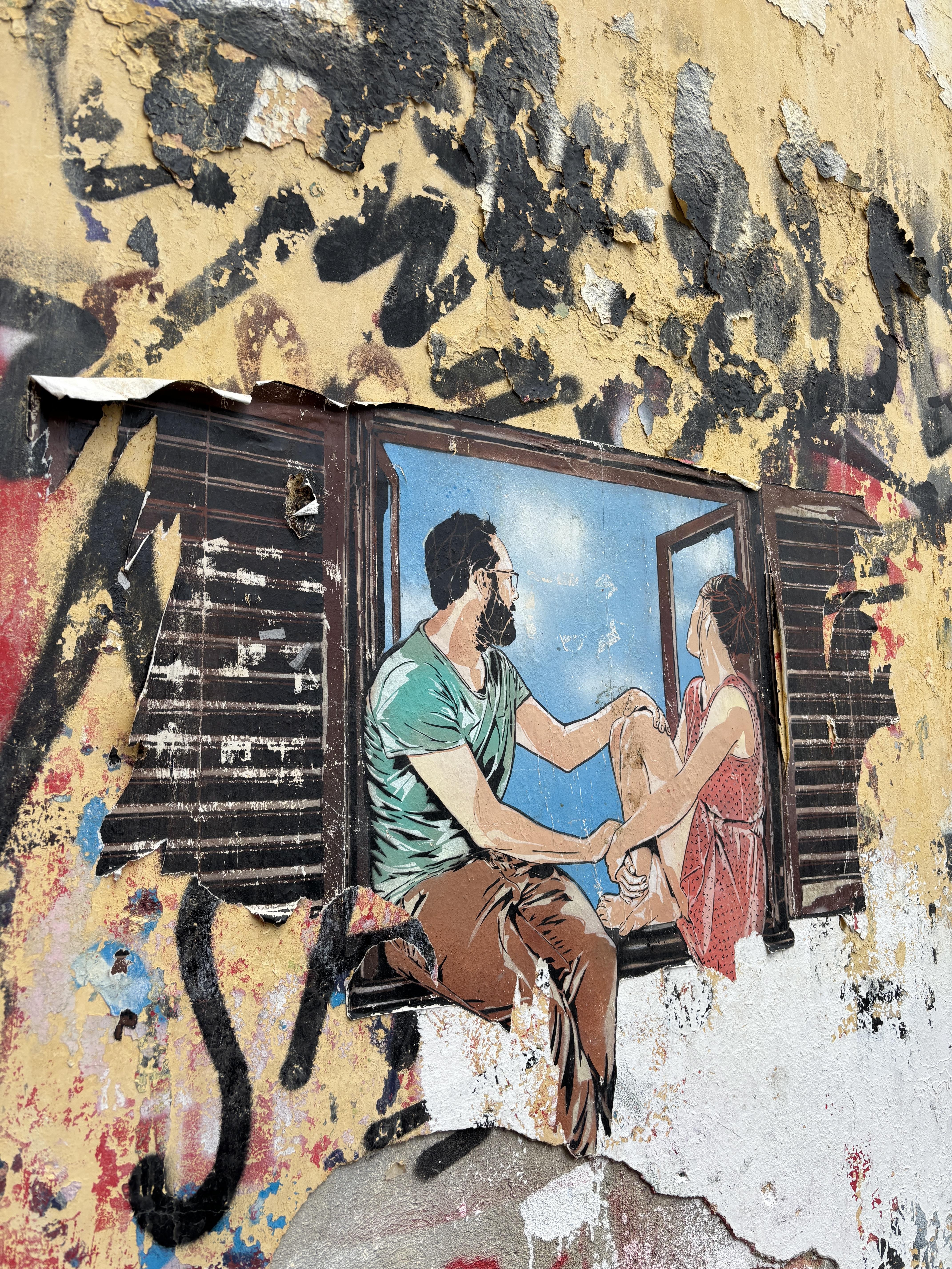 One of my favorite things to do in new cities is explore the street art, and this piece—one of my absolute favorites, found in Lavapiés—feels like a perfect snapshot of the lives of the people who live there