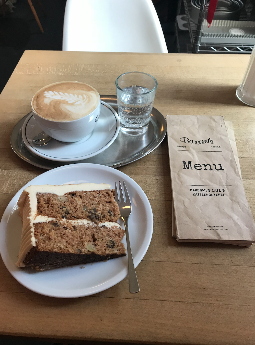 Germany has the tradition of afternoon Kaffee und Kuchen (kah-feh und koo-ken). This tradition involves drinking coffee (Kaffee) and eating cake (Kuchen) in the afternoon as a special weekly treat. This week I had the most delicious piece of pumpkin cheesecake and a large mug of Milchkaffee, which is coffee with lots of milk and foam.