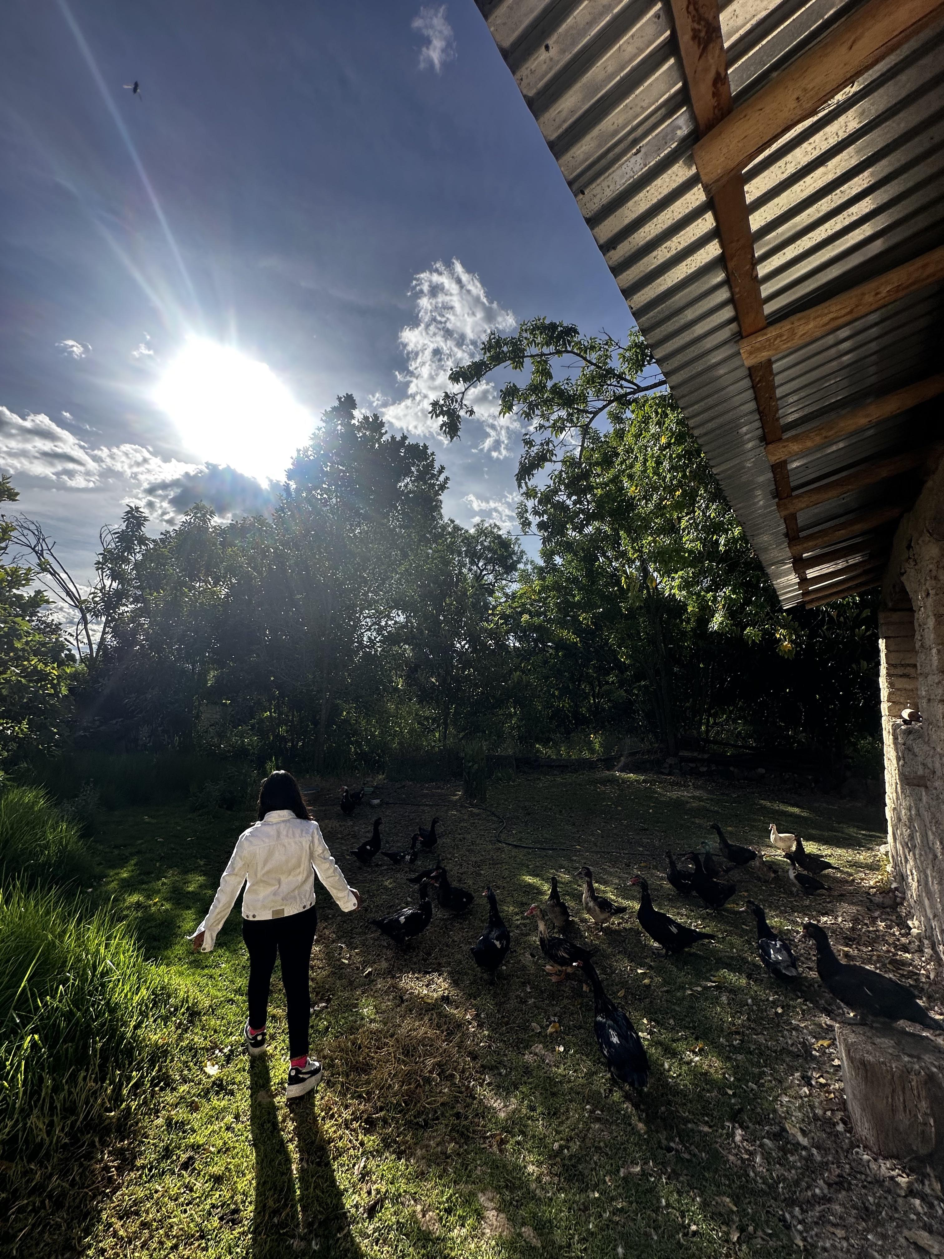 Some of my chores include cleaning my room, making my bed, feeding my dog and the ducks, and sweeping the kitchen. I also help run the store that we have in the front of the house. When people come to order things, I help get what they need, collect their payments, and when we get shipments in, I help put everything where it belongs. Lastly, sometimes I cook for myself when my mom is busy. I know how to make fried eggs.