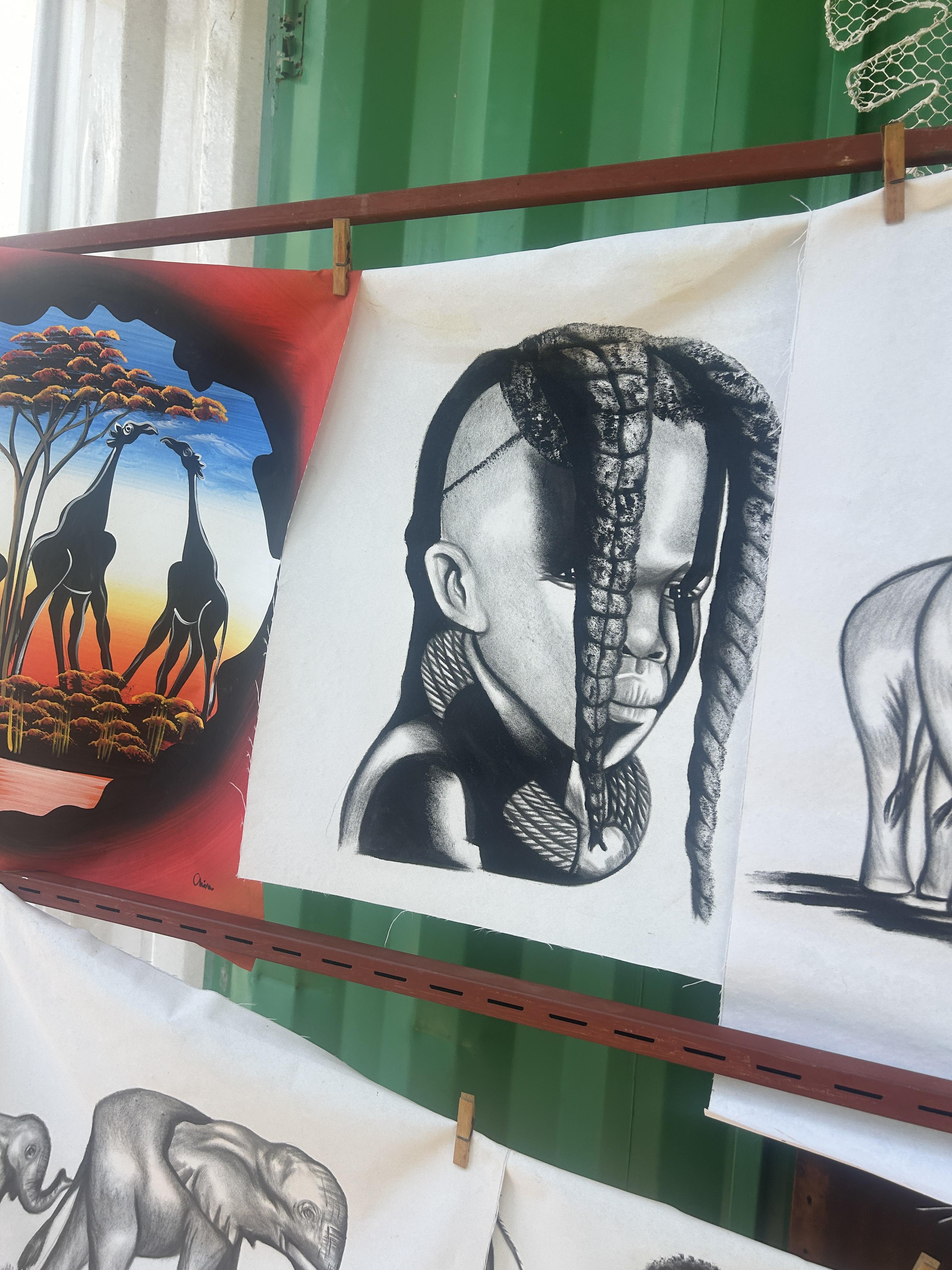 One thing that I haven't seen much of in Eswatini is paintings or sketches. As someone who enjoys black and white 2D art, I was over the moon to find a painter at Swazi Candles who uses black paint on a canvas to create the same high contrast effect as a well-exposed black and white photograph.