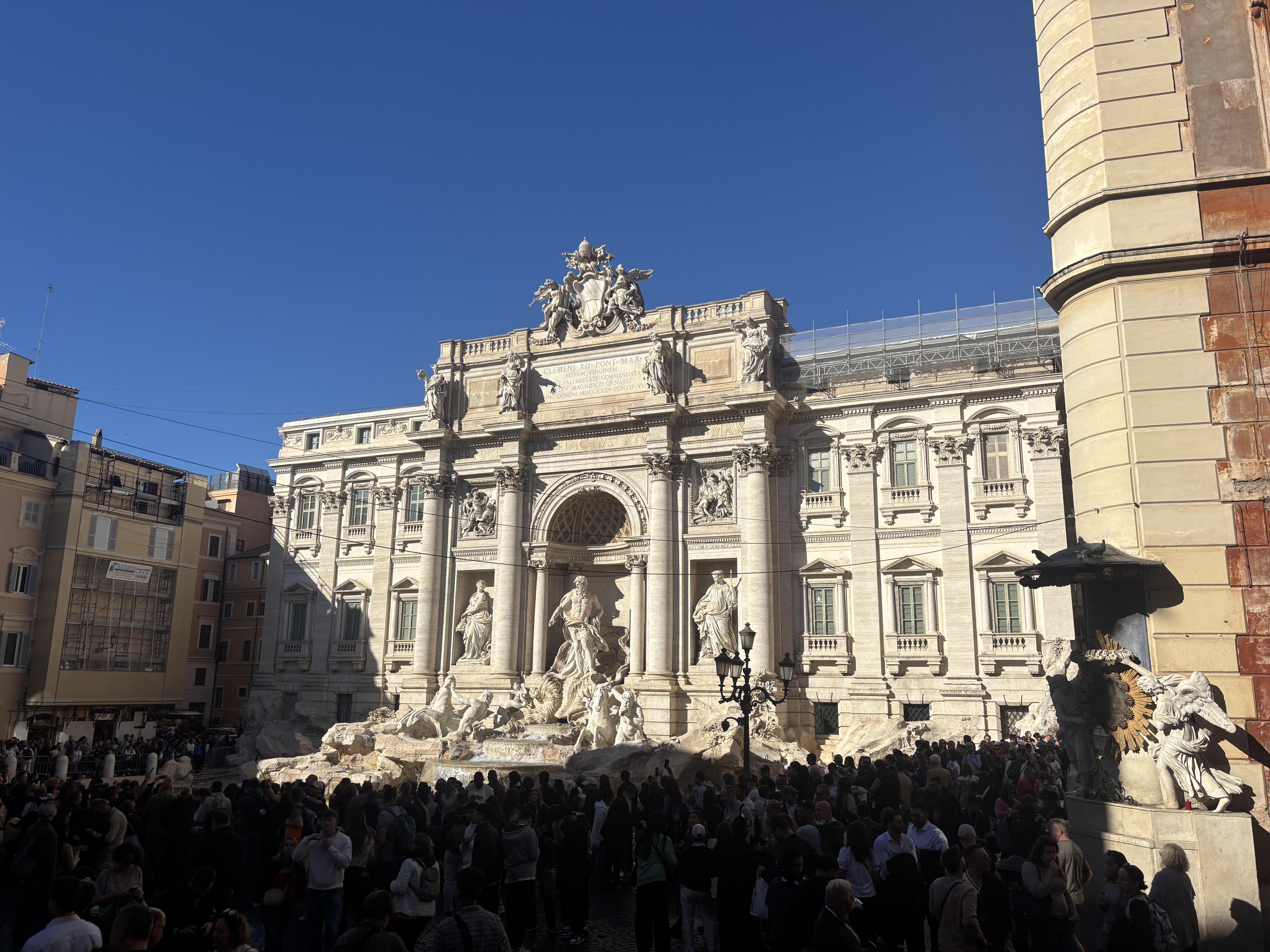 The Trevi Fountain, the largest fountain in the city. The origins of the fountain go back to 19 BCE. This place was so packed with people that it was hard to walk through it!