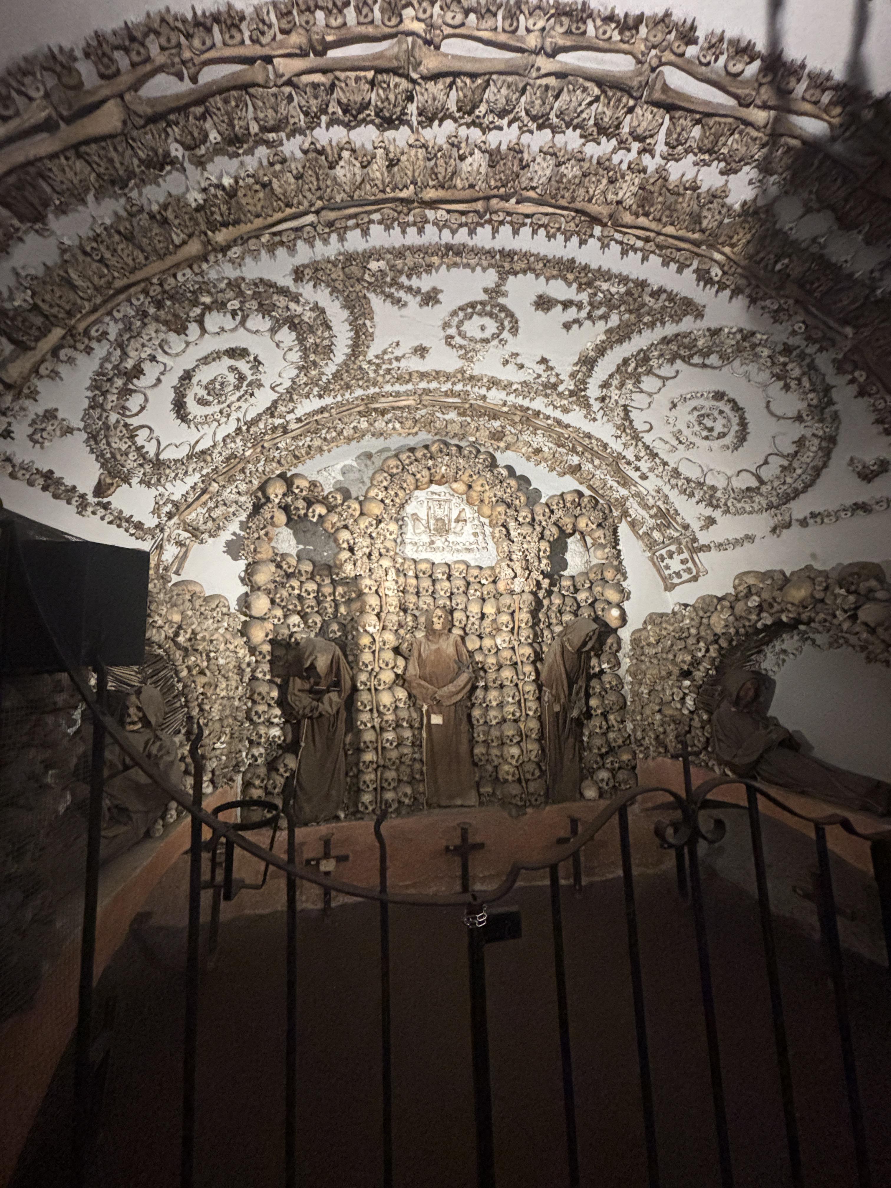 The Crypt of the Monks, which is a sacred place with the skeletal remains of around 3,700 to 4,000 Capuchin friars (members of a Roman Catholic men's religious order) arranged to decorate the walls and ceilings as a reminder of mortality