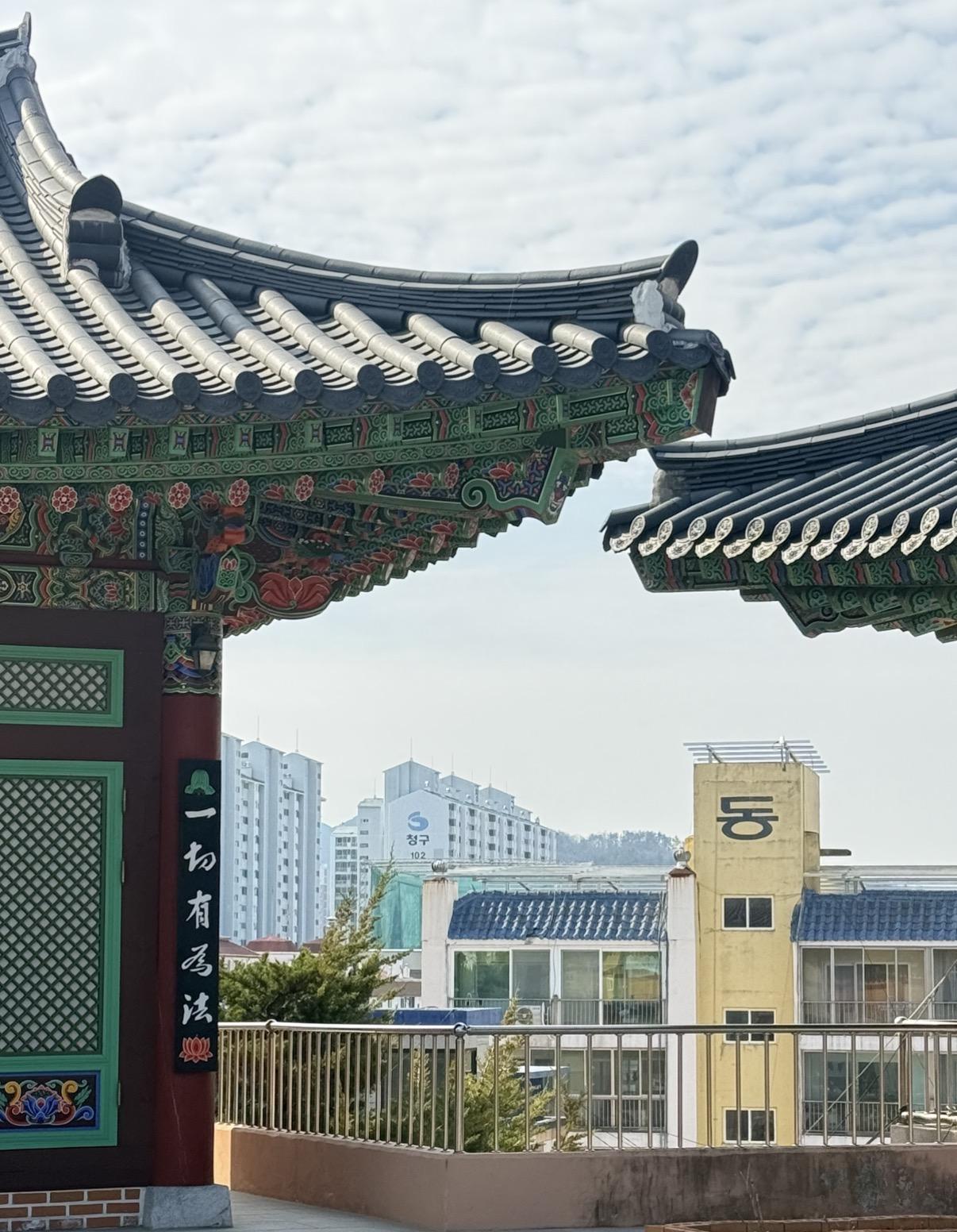 Korean Buddhism is deeply connected to the environment. Temples are always built in the mountains, deep in nature, far away from busy cities. This helps people practice what Buddhism teaches, like calmness, focus, and deep appreciation for the natural world. 금강사 (Geum-gang-sa) is actually located right in the center of 구미 (Gu-mi), just across the street from the giant high-speed train station. However, it is located on the top of a hill, where it is surrounded by trees, creating a quiet forest with fresh air and mountain air. It was very easy for me to feel at peace there, and I was able to meditate, reflect and feel at ease.