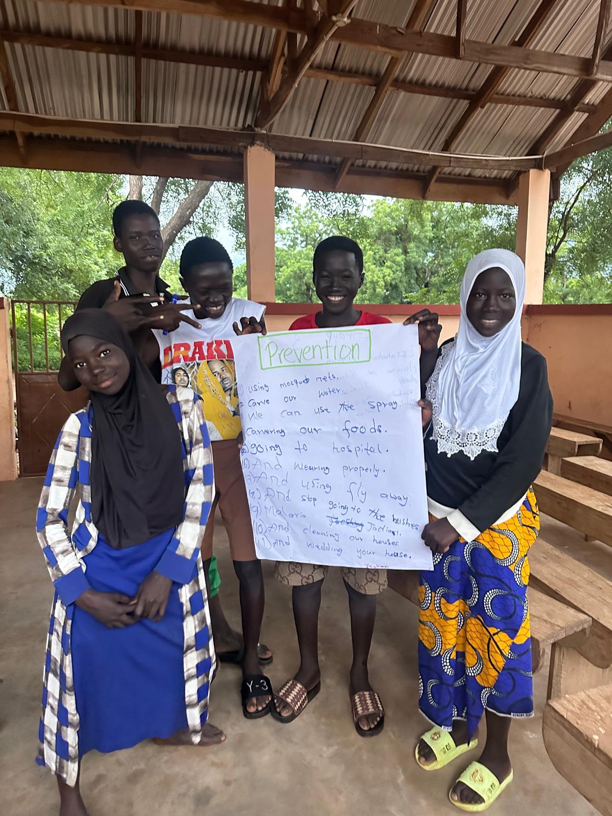 Health club members presenting their project on Malaria prevention