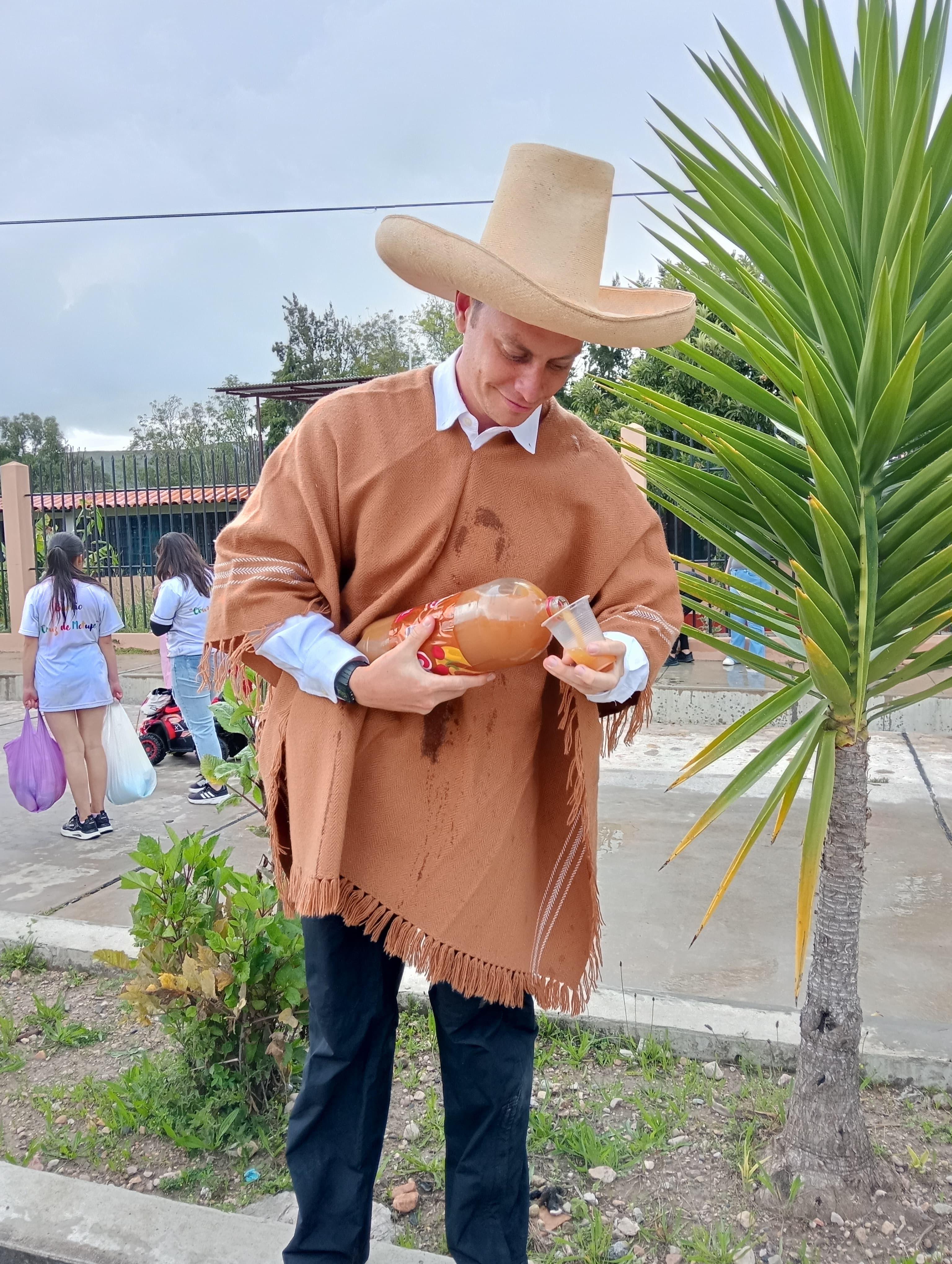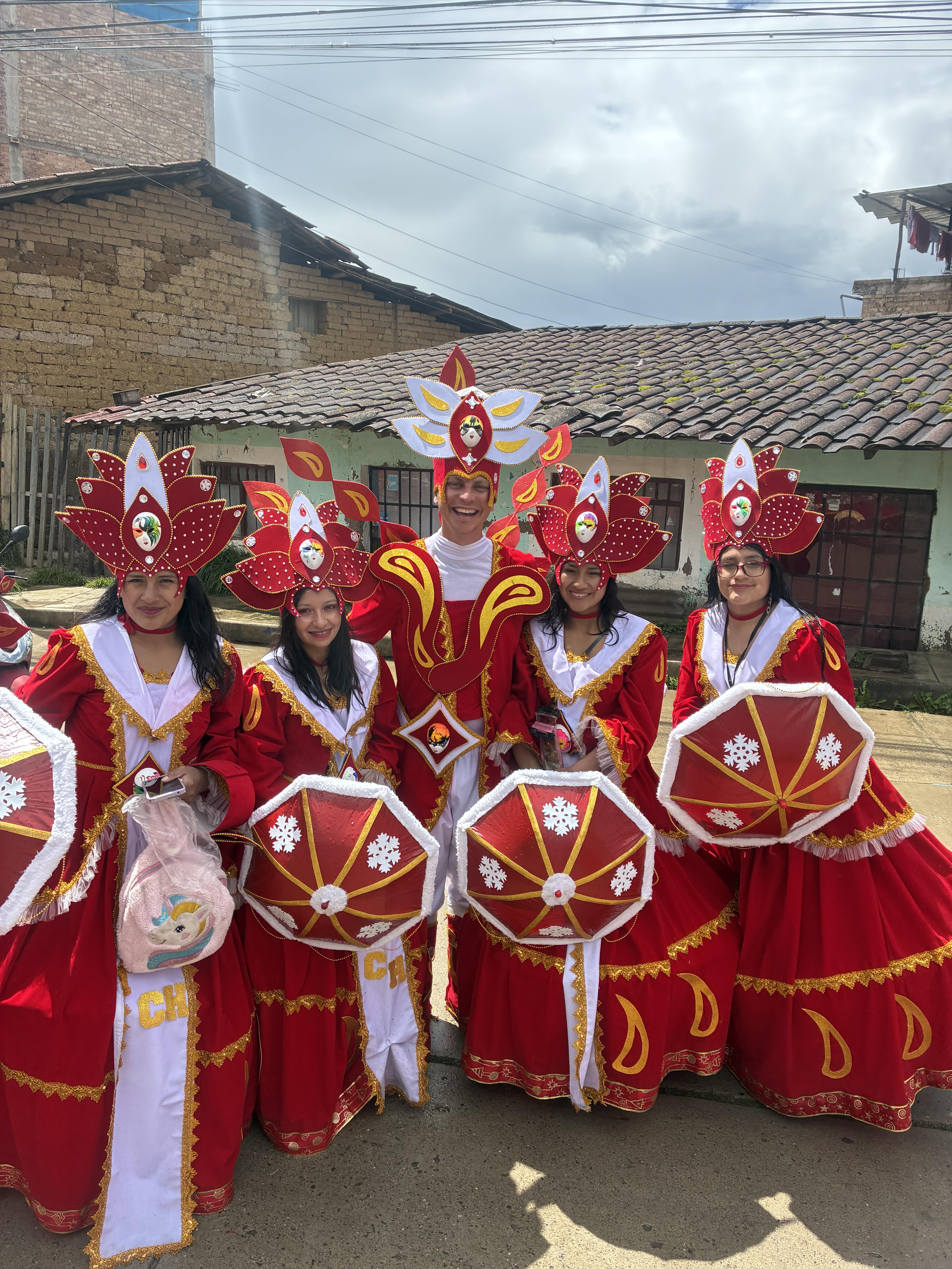 Carnival is famous for the drink chicha, which is made with corn. The environment of Cajamarca is great for growing corn, so they eat it a lot. In the parade, my job was to serve chicha to all of the people who were watching!