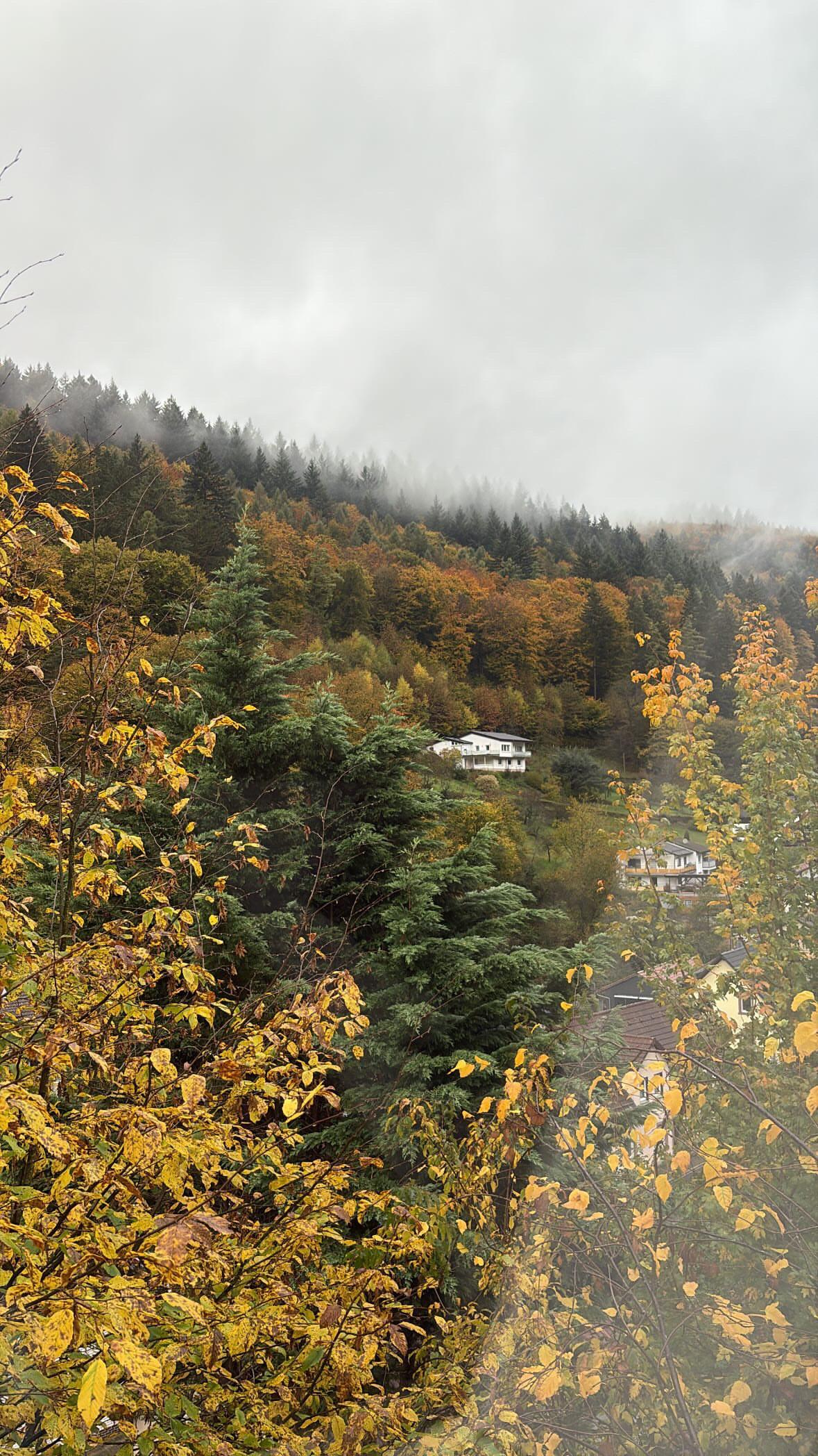 I would say the breathtaking scenery from my bedroom window. I live in the mountains of Heidelberg, Germany which are dotted with many houses. It is especially cool when the fog rolls in sometimes and covers the coniferous trees - feels like I am in a fairy-tale or a year-long vacation!
