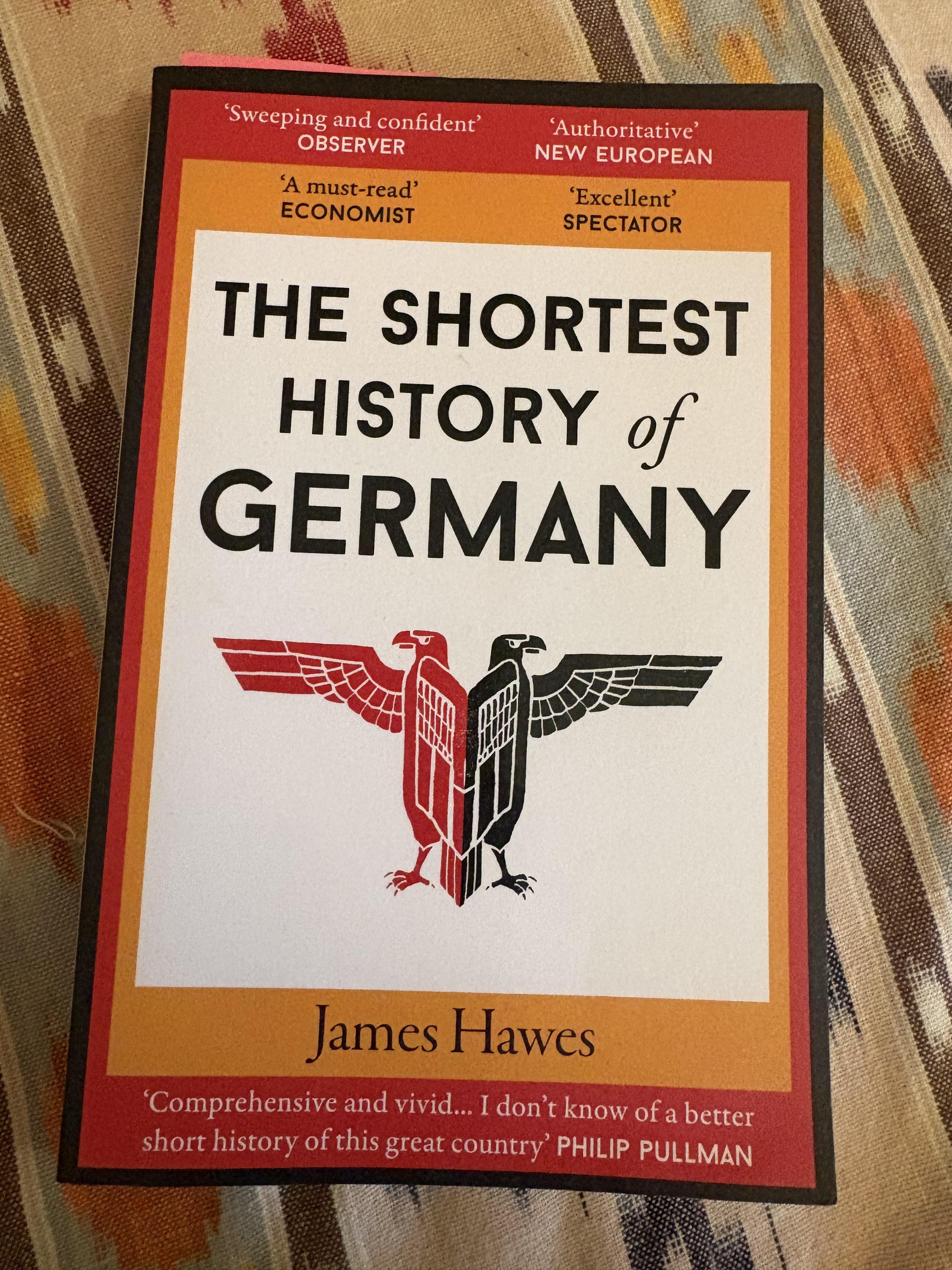 For work, I read an interesting paper on advances in chemotherapy-based drugs made out of nanoparticles to treat brain cancer more effectively. For fun, I am currently reading The Shortest History of Germany by James Hawes, as I want to learn more about German history, and I love reading non-fiction and historical fiction as a "certified history buff"!