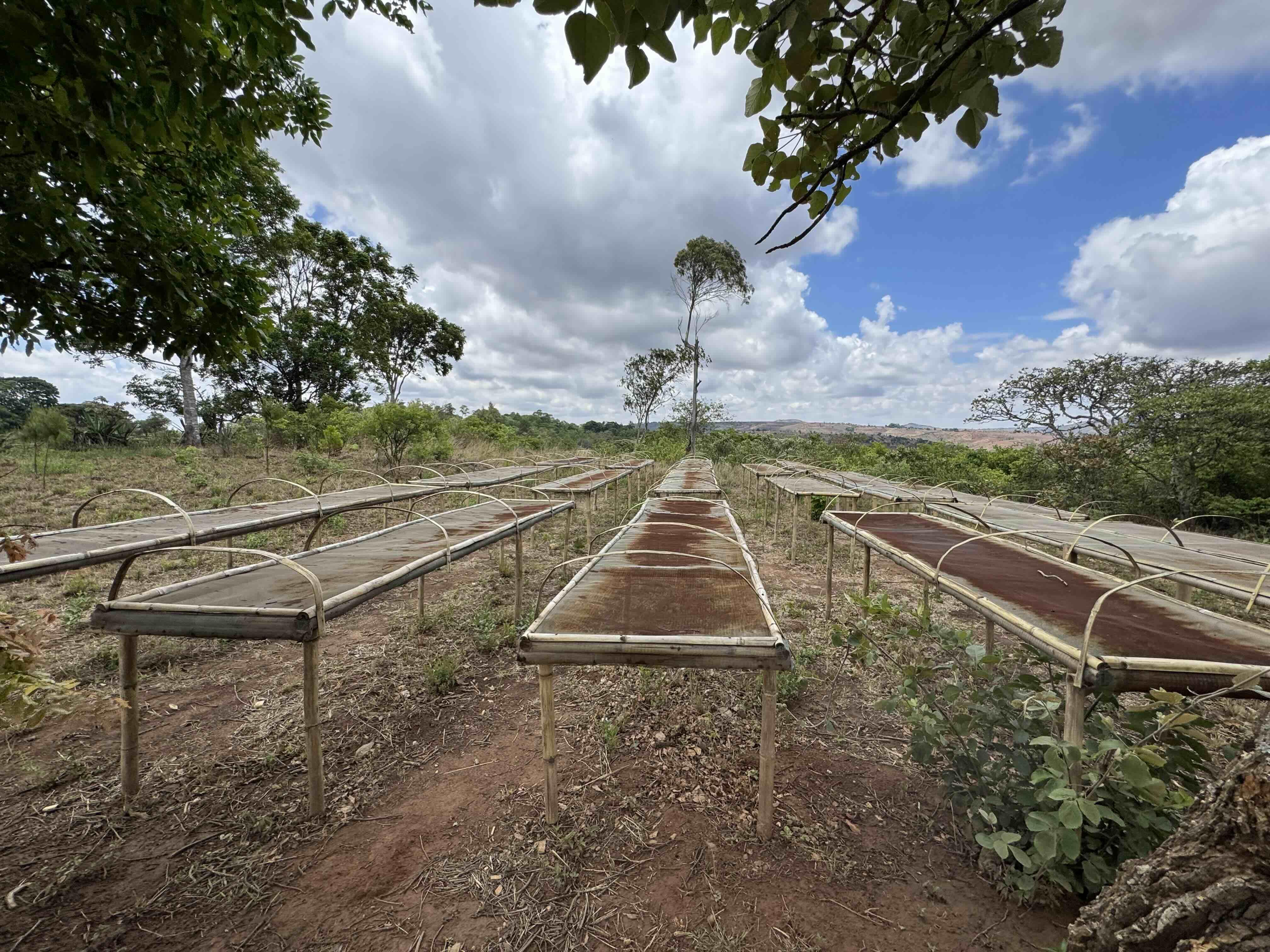Drying racks lined up for sun-drying the harvest.